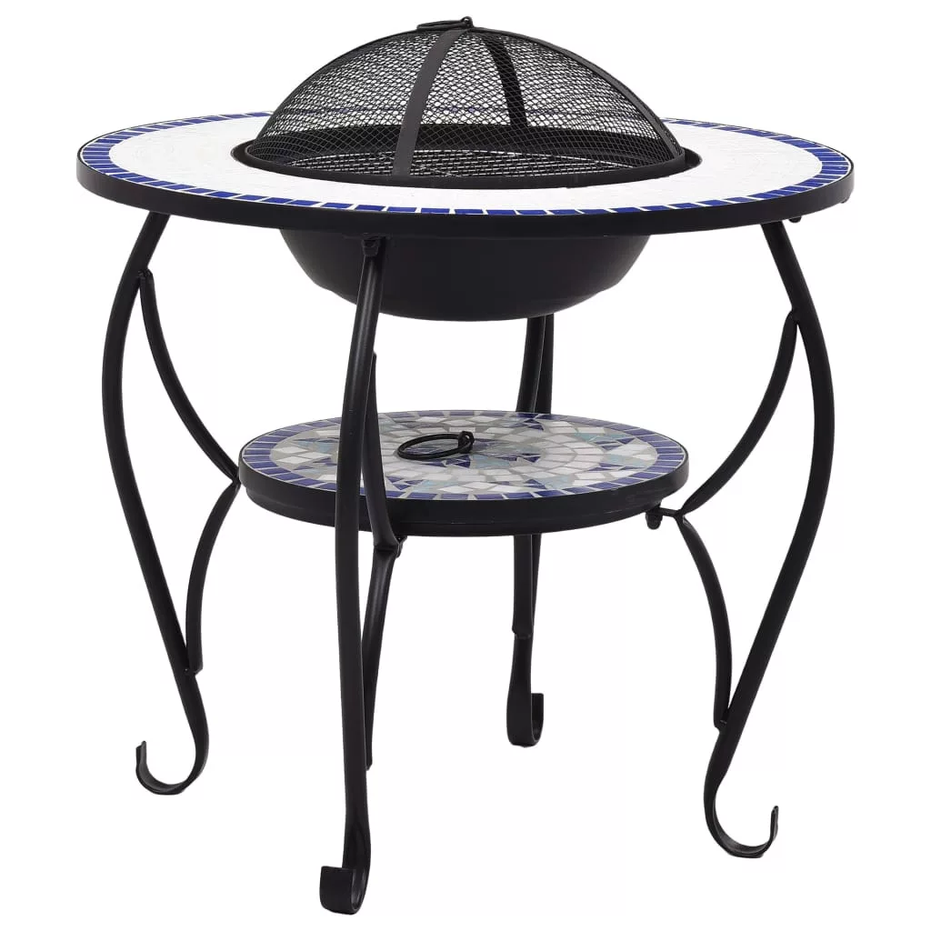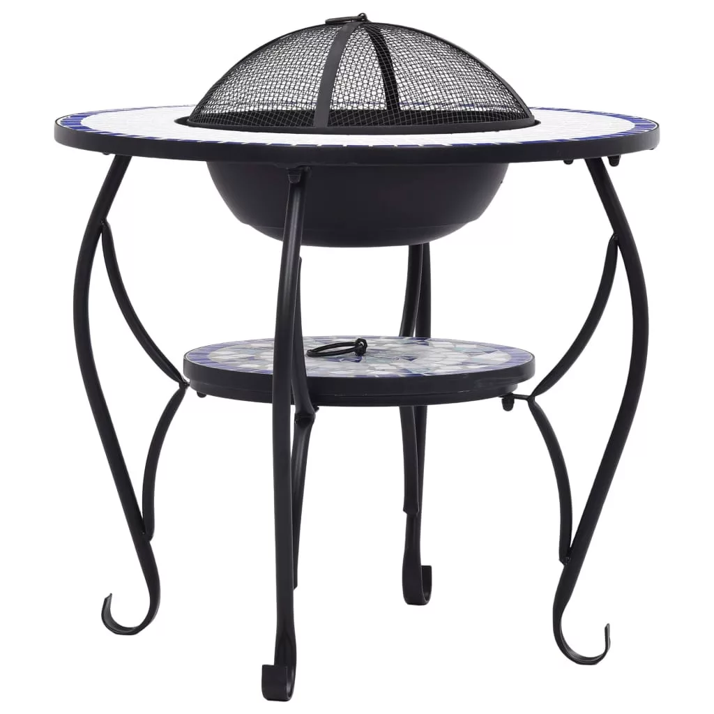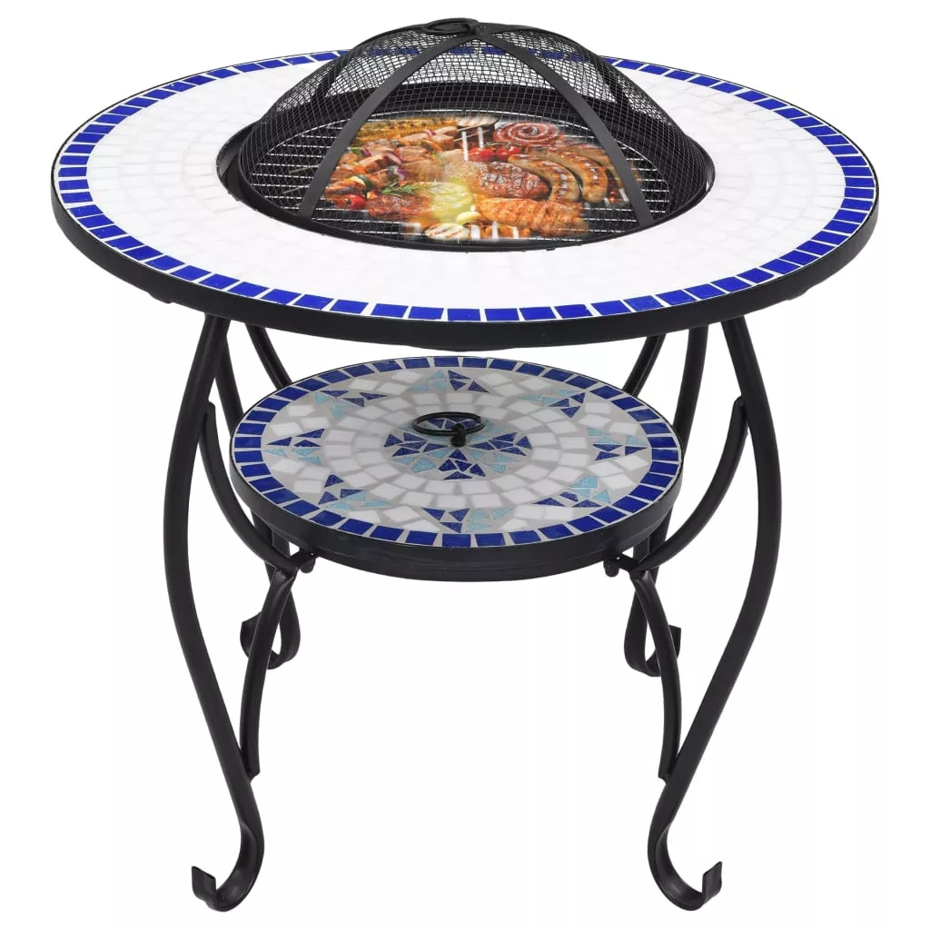 kék és fehér kerámia mozaik tűztál asztallal 68 cm
