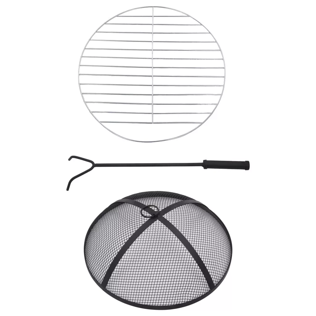 Ez a tűzrakóhely dekoratív és hangulatos kiegészítője lesz kertjének vagy terasza berendezésének, miközben melegen tartja esténként, amikor hidegebb lesz. Az acélból készült tűztál kiválóan nyeli el és sugározza a hőt. Száraz fa, rönk vagy faszén égetésére használható. A tűztálat egy négylábú állvány támasztja alá. A mellékelt biztonsági háló lehetővé teszi az égő tűz megfigyelését, elzárja a tüzet a biztonság érdekében, és megakadályozza a szikrák és a törmelék kirepülését. A mellékelt piszkavassal a hálós fedelet leveheti, illetve átrendezheti a rönköket és a szenet. Ezenkívül a tűzrakó asztal grillezőként is használható. Kerámia felülete tökéletes helyet kínál italok és sütnivalók tárolására. Kérjük, vegye figyelembe, hogy a termék nem alkalmas arra, hogy hideg időjárás esetén kint hagyja. FIGYELEM! Ne használja beltérben! Tartsa távol a gyermekeket és a háziállatokat.