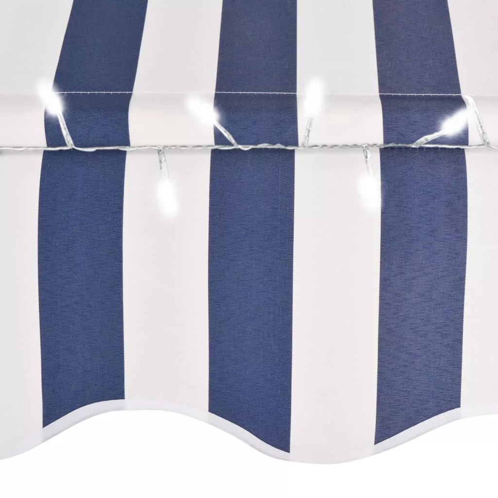 kék és fehér kézzel kihúzható LED-es napellenző 250 cm