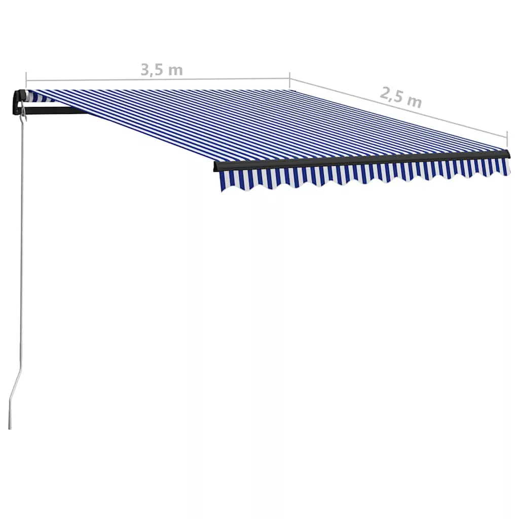 kék és fehér kézzel kihúzható napellenző 350 x 250 cm