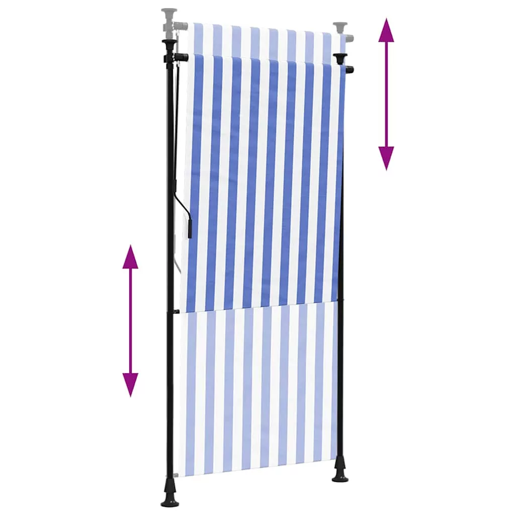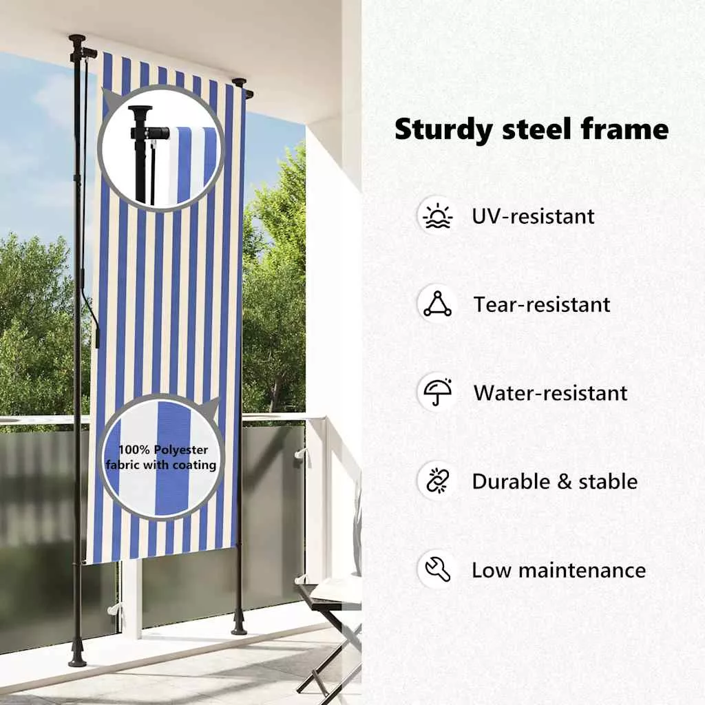 kék és fehér szövet és acél kültéri roló 100 x 270 cm