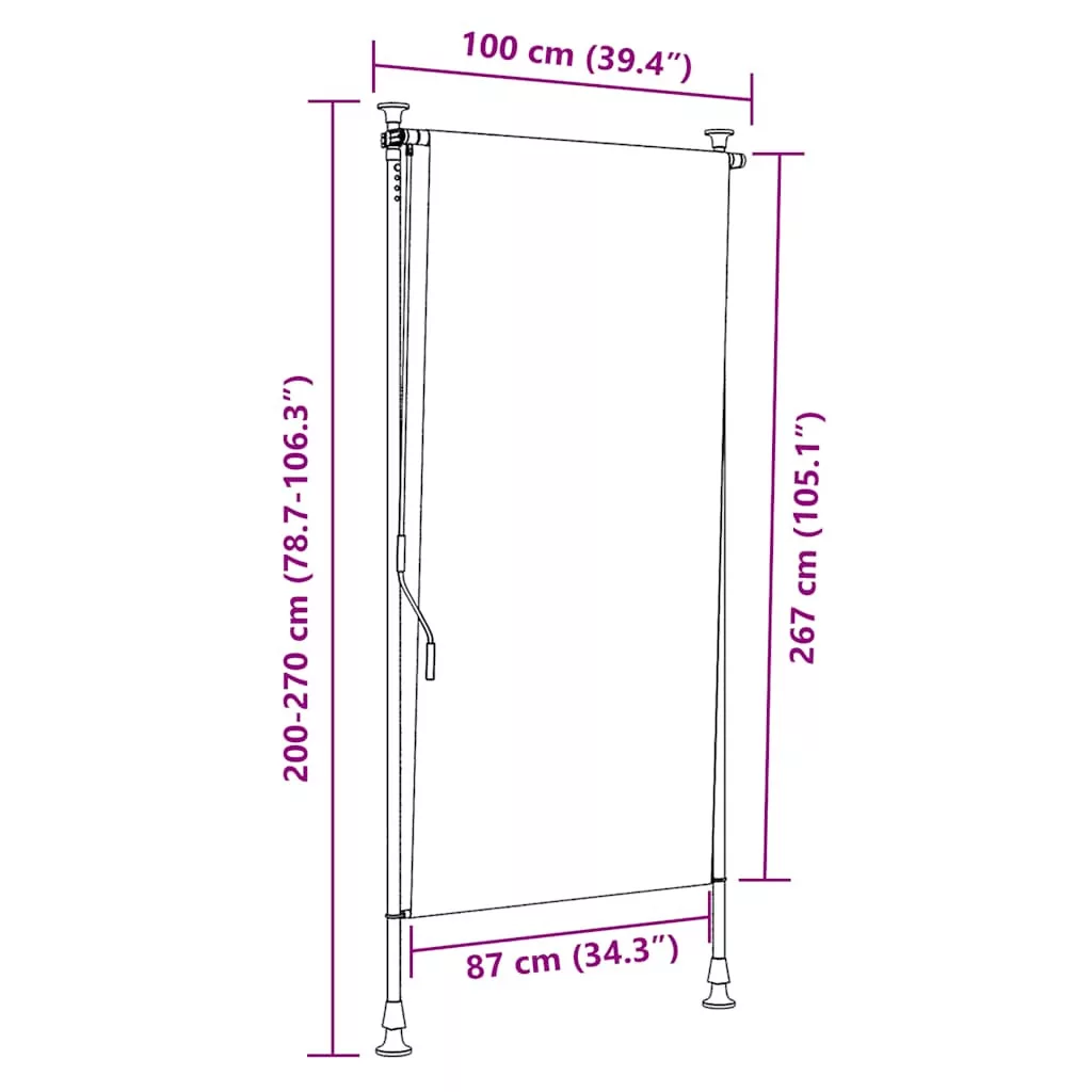 Élvezzen egy hűsítő italt, pár finom falatot vagy beszélgessen egy jót teraszán a barátaival, miközben e kültéri roló mögött pihen! Tartós anyag: A napellenző váz acélból készült, amely robusztus és tartós. A PU felületkezeléssel ellátott szövet UV-álló. Óvja családját vagy vendégeit az UV-sugárzástól és a vakító napfénytől. Behúzható funkció: A fogantyú hajtókarnak köszönhetően az árnyékoló roló behúzható, hogy megfeleljen az Ön különböző igényeinek. Kihúzva hűsítő árnyékot nyújt, összehúzva pedig nem akadályozza a kilátást. Állítható magasság: A tartórudak magassága 225-275 cm között állítható, így több mennyezet magassághoz igazodik. Széleskörű alkalmazás: A kültéri árnyékoló egyszerű és stílusos kialakítású, amely jól illeszkedik otthoni vagy kereskedelmi környezetébe. Különféle helyekre alkalmas, például erkélyre, teraszra, udvarra, éttermekbe, kávézókba, üzletekbe stb.