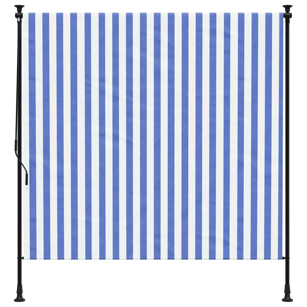 kék és fehér szövet és acél kültéri roló 200 x 270 cm
