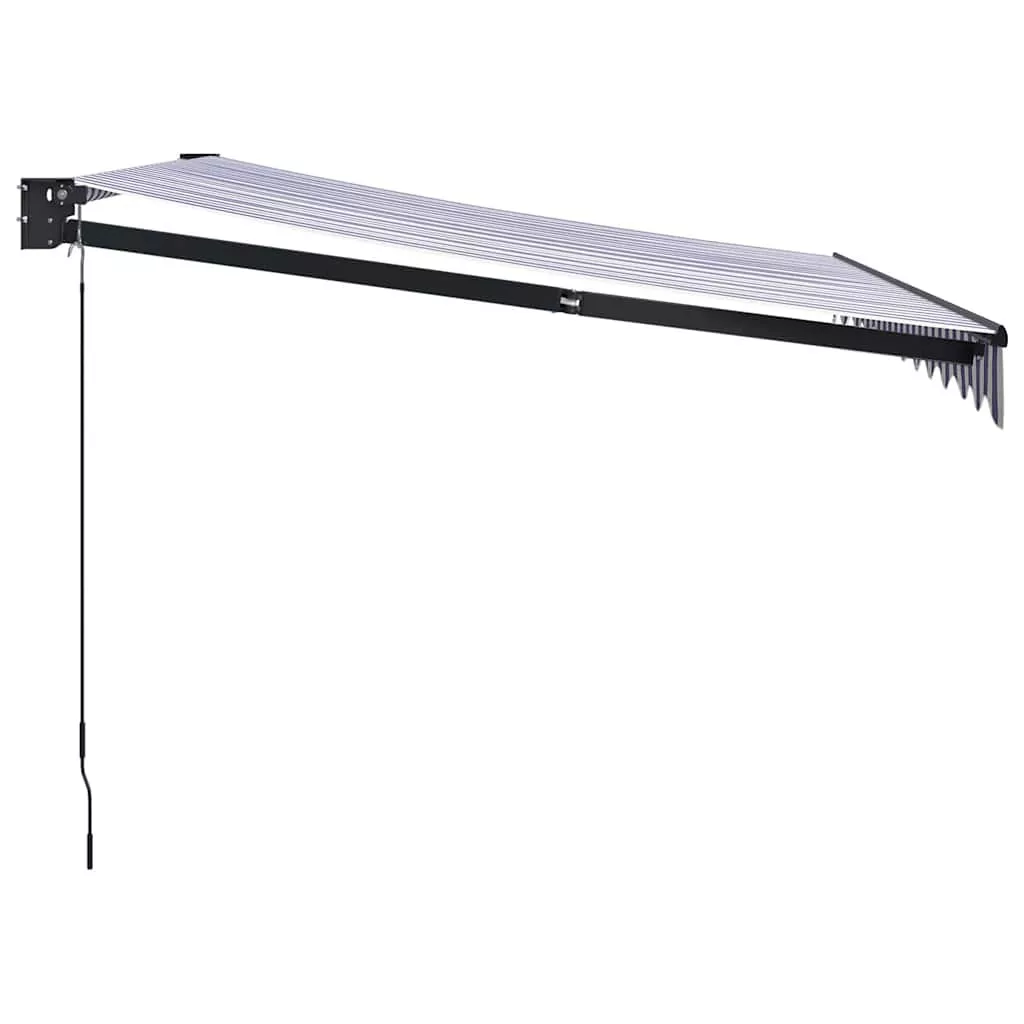 kék és fehér szövet és alumínium behúzható napellenző 3 x 2,5 m