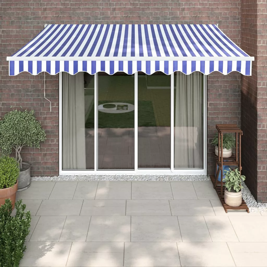 kék/fehér szövet és alumínium behúzható napellenző 3,5 x 2,5 m