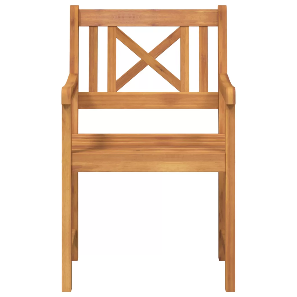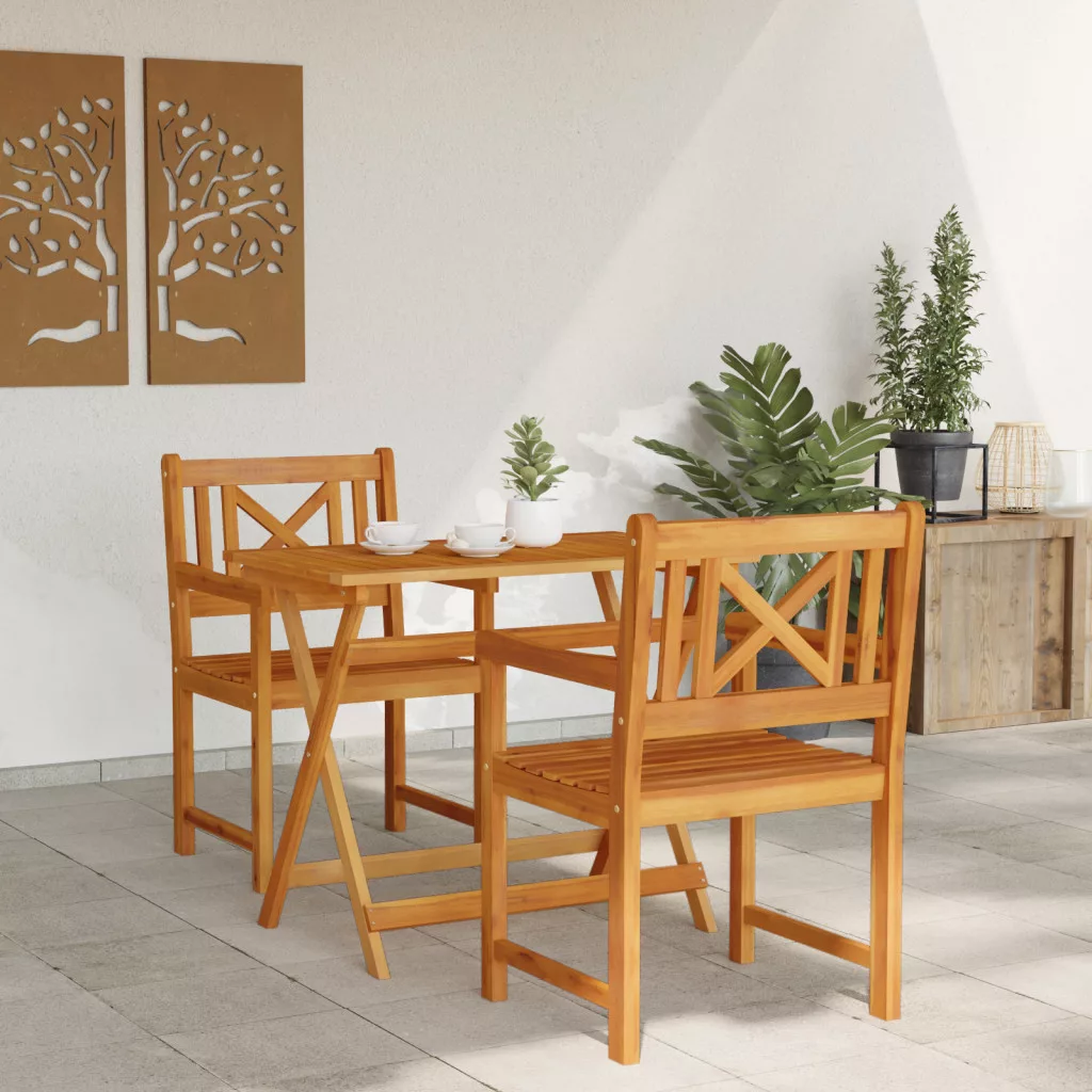 Ez a kertiszék szett a modern stílust erős funkcióval keveri. Tömör akácfából készültek, szuper természetes felülettel, amik jól néznek ki kültéren, így ideálisak teraszokra, erkélyekre vagy kertekbe. Minőségi kivitelezés: Fából készült, ami biztosítja, hogy tartós legyen és bírja az időjárást. Sima textúra: Kényelmes és elegáns megjelenésű ülőhelyek. Funkcionális dimenziók: 56 x 56 x 90 cm, kényelmesen elfér rajtuk 2 ember. Dizájn sokoldalúság: Kortárs stílus, ami bármilyen kültéri területhez passzol. Könnyű karbantartás: Az olajozott felület védi a fát és megkönnyíti a takarítást, így hosszú évekig jól működik.
