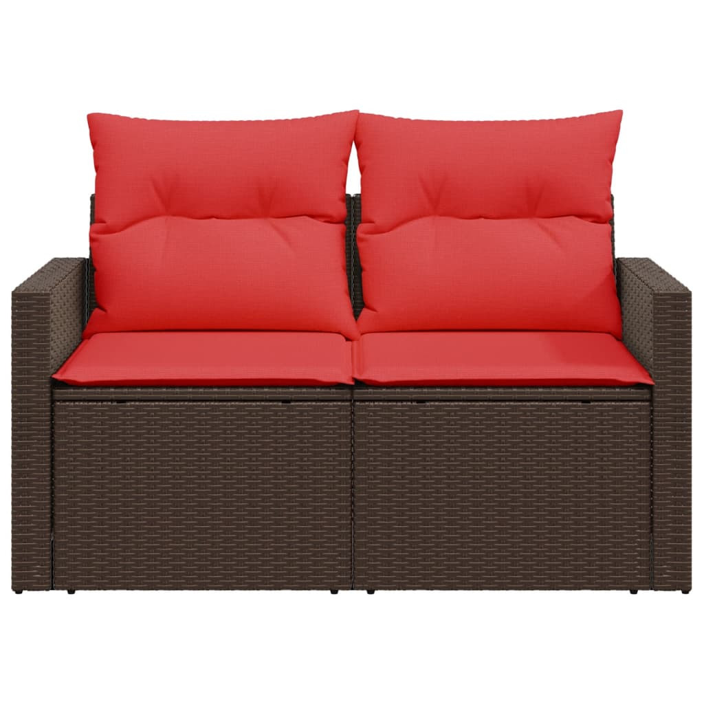 kétszemélyes barna polyrattan kerti kanapé párnákkal