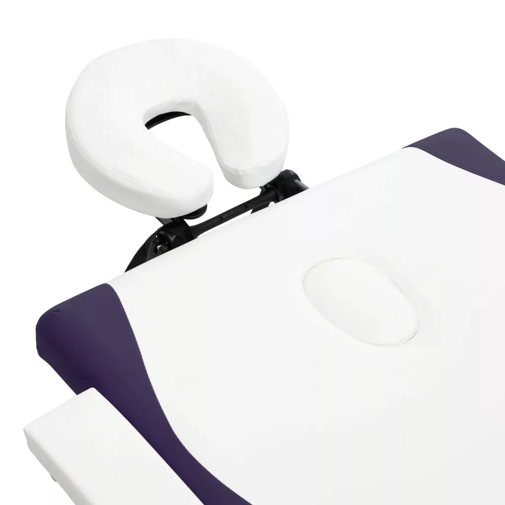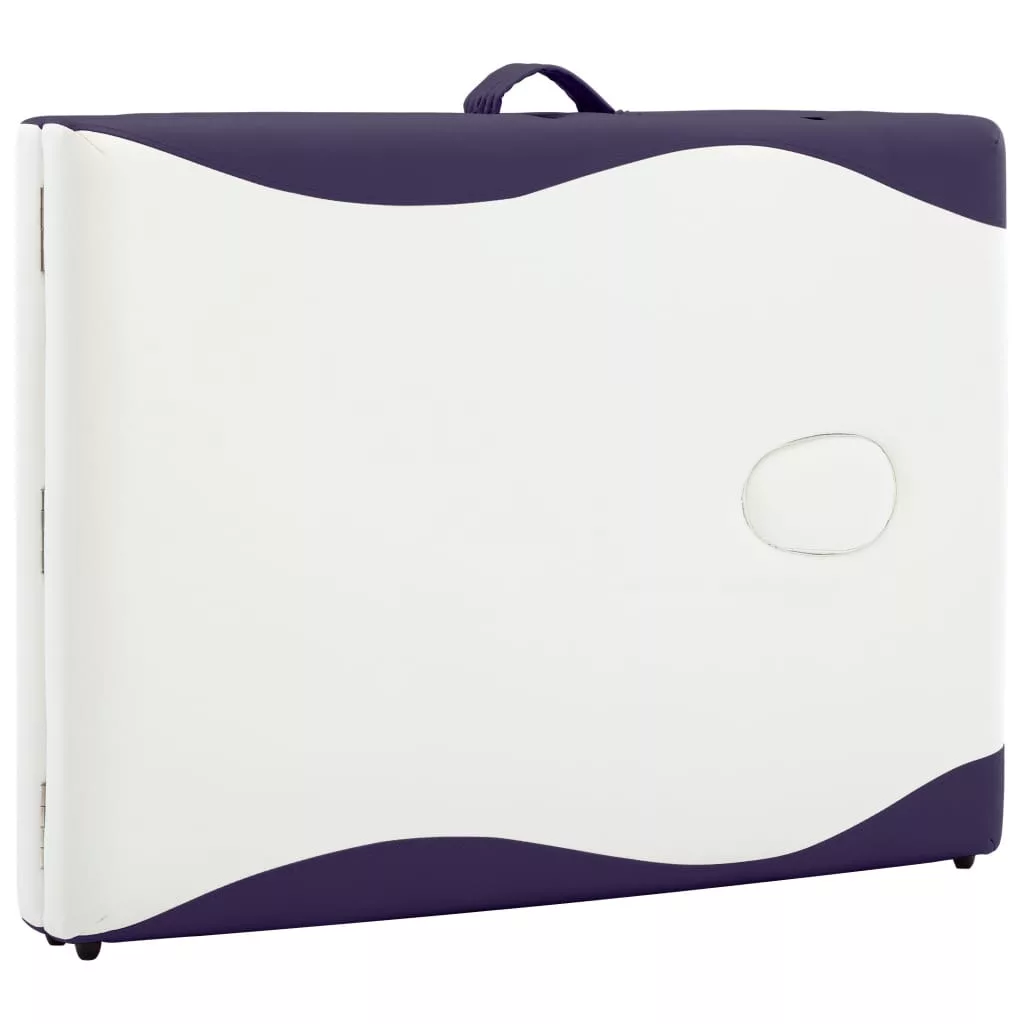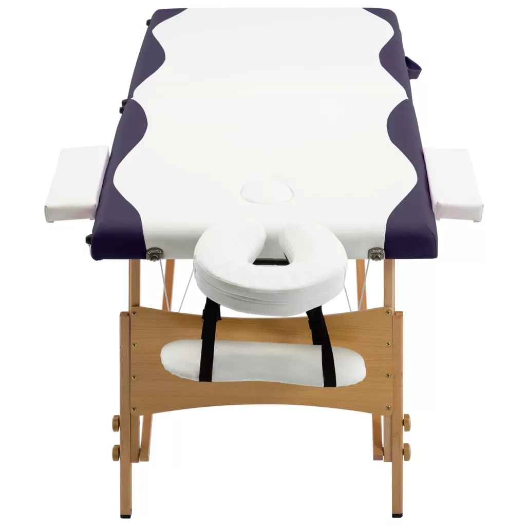 kétzónás fehér és lila összecsukható fa masszázsasztal