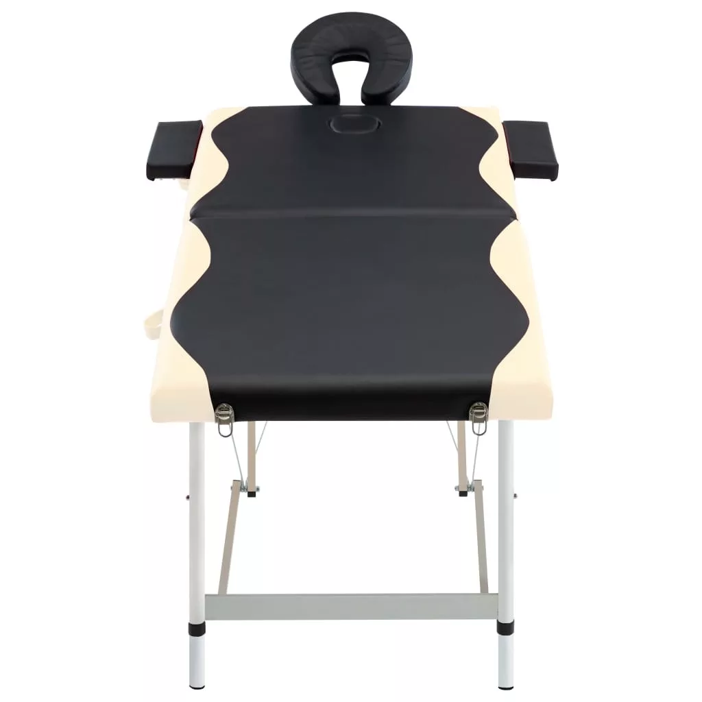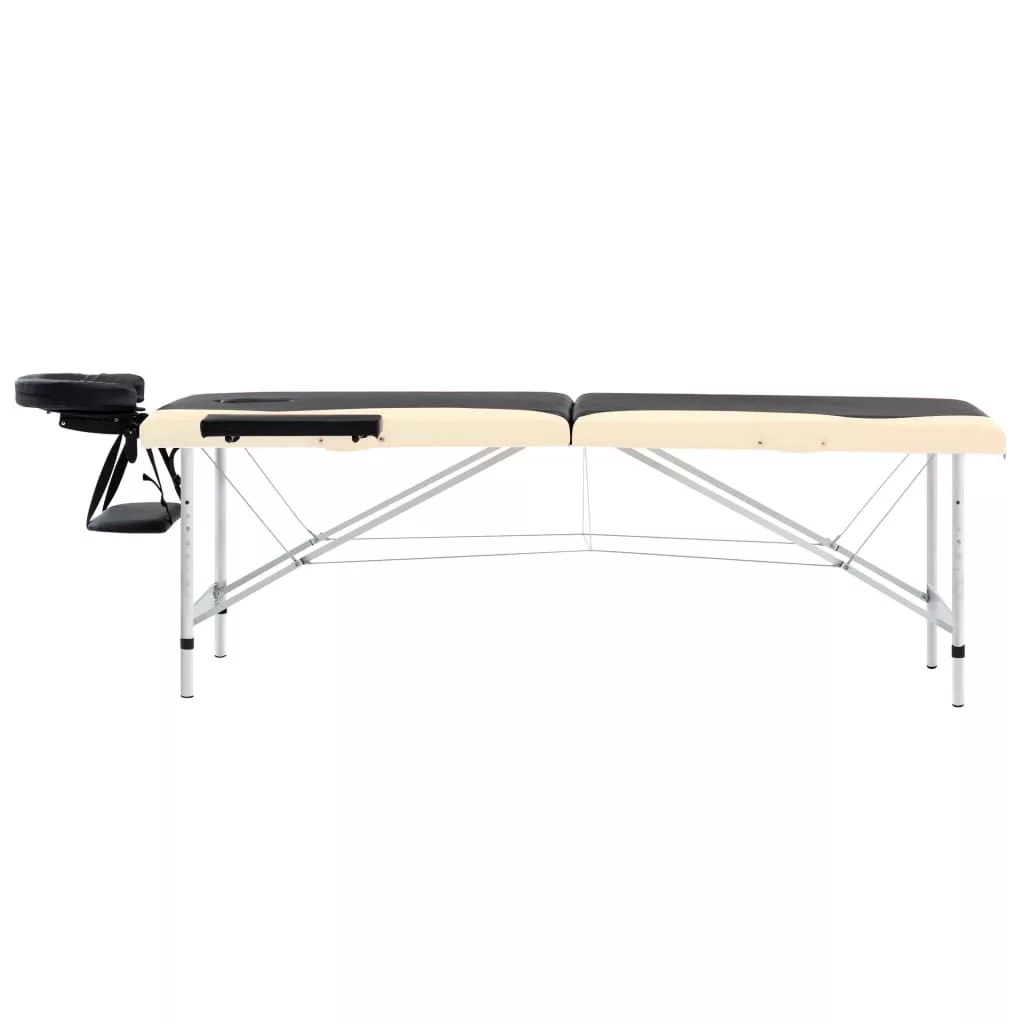 kétzónás fekete és bézs összecsukható alumínium masszázsasztal