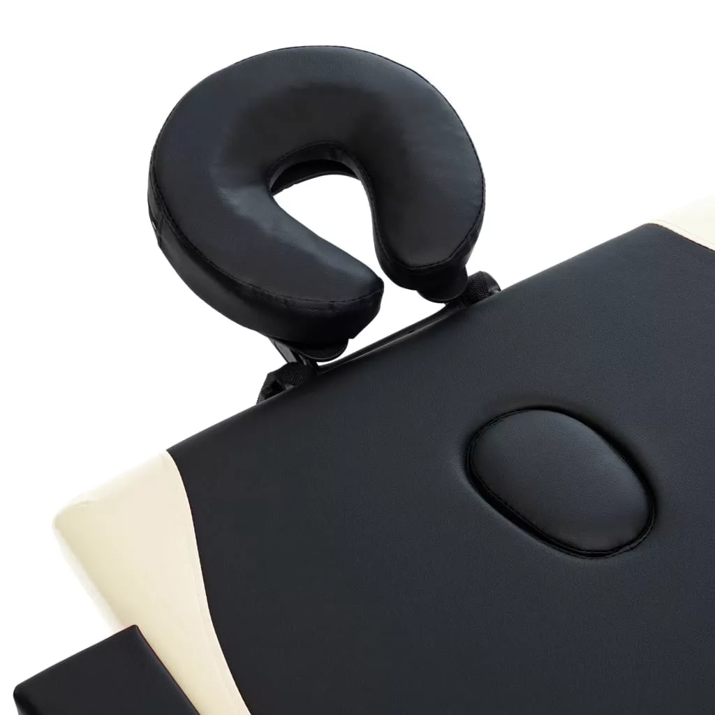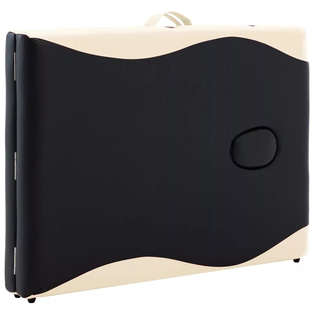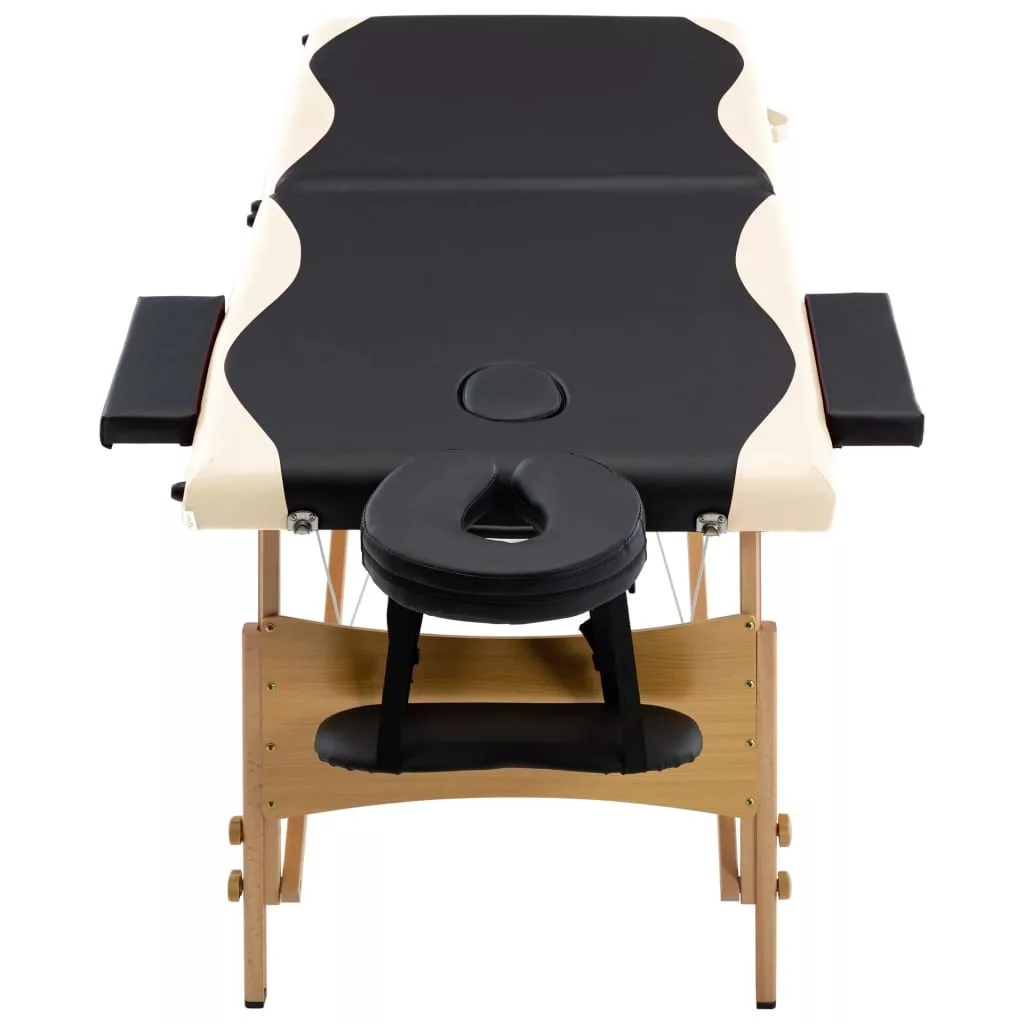 kétzónás fekete és bézs összecsukható fa masszázsasztal