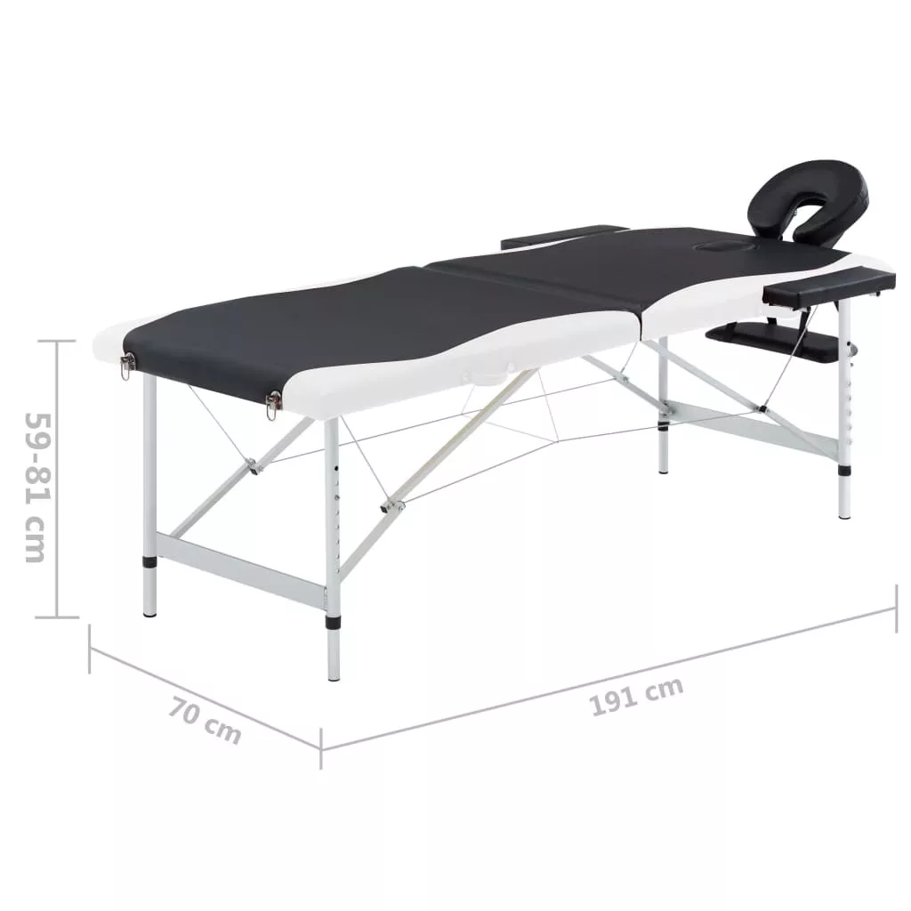 kétzónás fekete és fehér összecsukható alumínium masszázsasztal