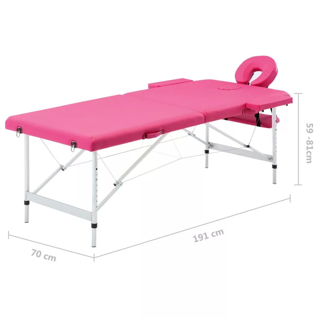 kétzónás rózsaszín összecsukható alumínium masszázsasztal