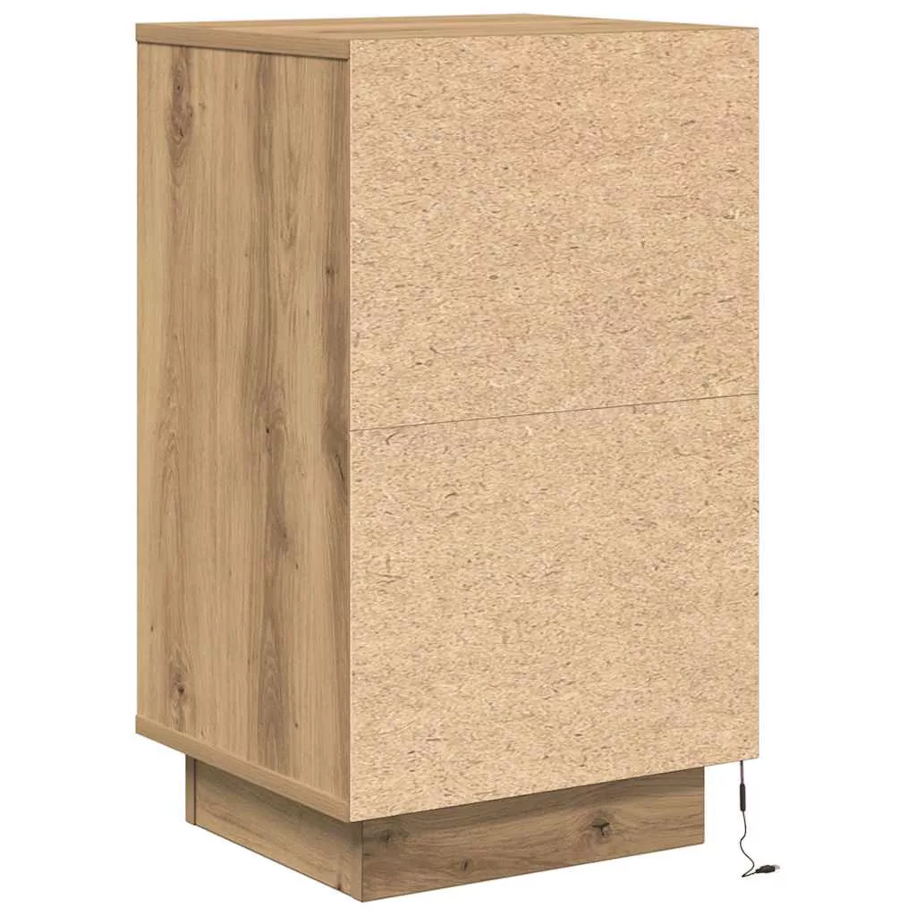 kézműves tölgy színű éjjeliszekrény LED-fényekkel 38x34x65 cm