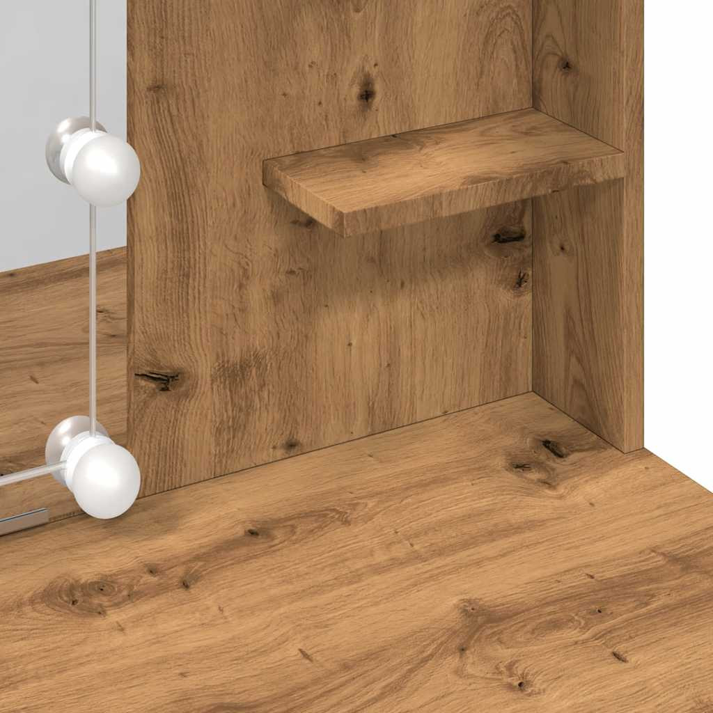 kézműves tölgy színű fésülködőasztal LED-del 96x40x142 cm