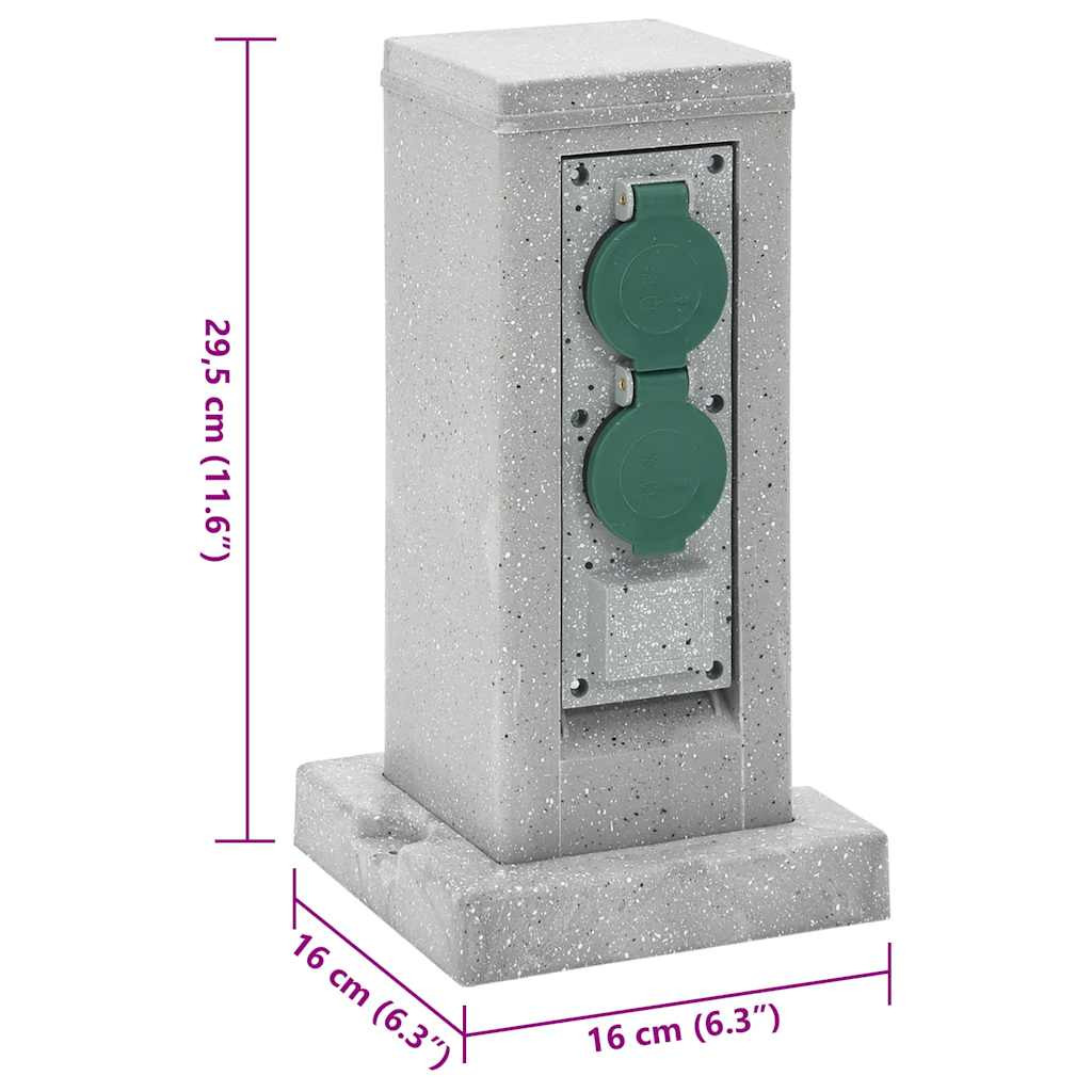 kőhatású szürke 4 utas kültéri tüskés konnektor 16x16x29,5 cm