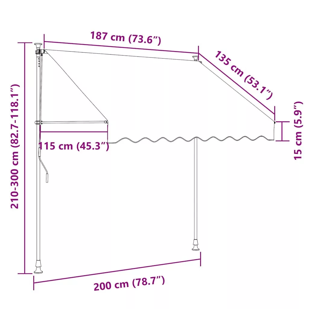 Ez a feltekerhető napellenző tökéletes megoldás ablakok, erkélyek, teraszok vagy kerti helyek árnyékolására. Ez a vízlepergető és kosztaszító, UV- és időjárásálló napellenző kiváló minőségű, poliuretánnal bevont poliészterből készült. Az erős acélváz stabillá és strapabíróvá teszi a szerkezetet. A könnyen tisztítható poliészterszövet levehető és mosható. A fogantyú segítségével a pergola feltekerhető. A szerelési magasság és szög igény szerint állítható. Ráadásul a napelemes LED-lámpák energiatakarékos éjszakai világításként szolgálnak. A napellenző könnyen összeszerelhető. Ez a feltekerhető napellenző tökéletes választás kültéri területek árnyékolására és könnyen, manuálisan működtethető.