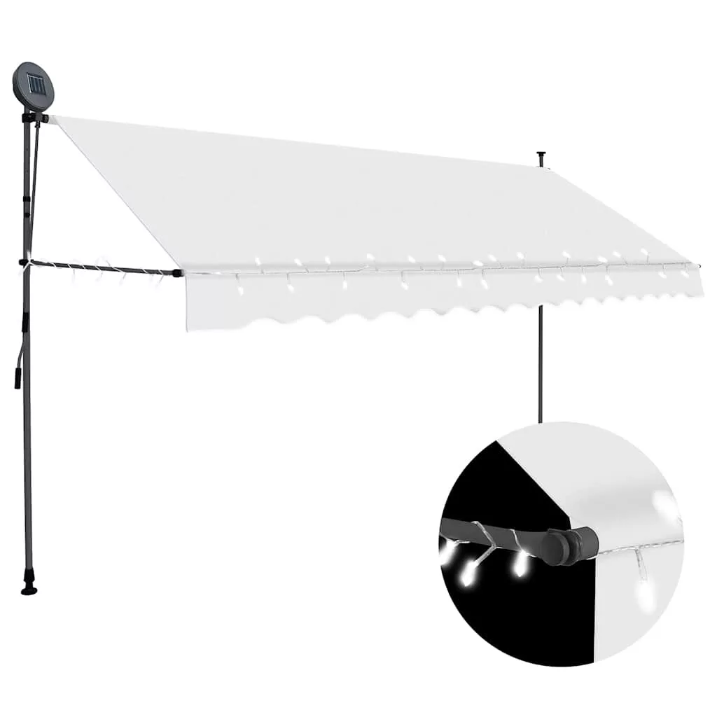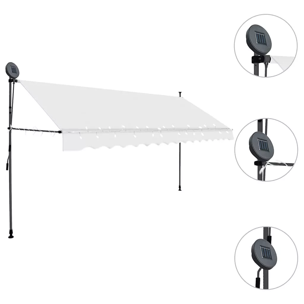 krémszínű kézzel kihúzható LED-es napellenző 350 cm