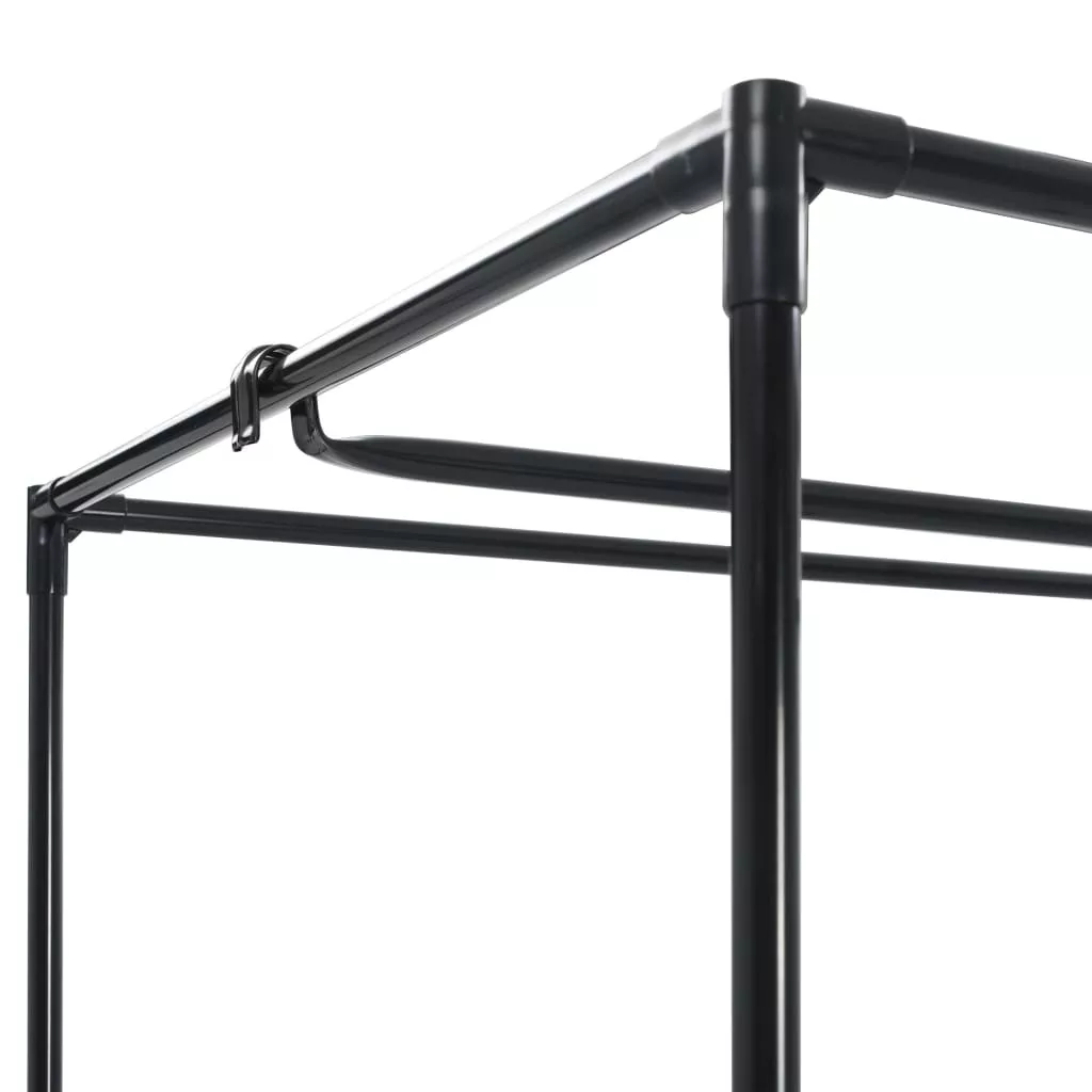 A strapabíró vasvázzal és cipzáras szövetborítással ellátott ruhásszekrény megvédi ruháit és cipőit a kosztól és a portól. A praktikus összedugható rendszernek köszönhetően a szekrény fúrás és csavarozás nélkül összeszerelhető. Az alapváz stabil vascsövekből áll, melyeket csatlakozóelemek kötnek össze. A szövetborítás légáteresztő poliészterből készült. A szekrény egy ruhafogassal felszerelt fő részből áll.