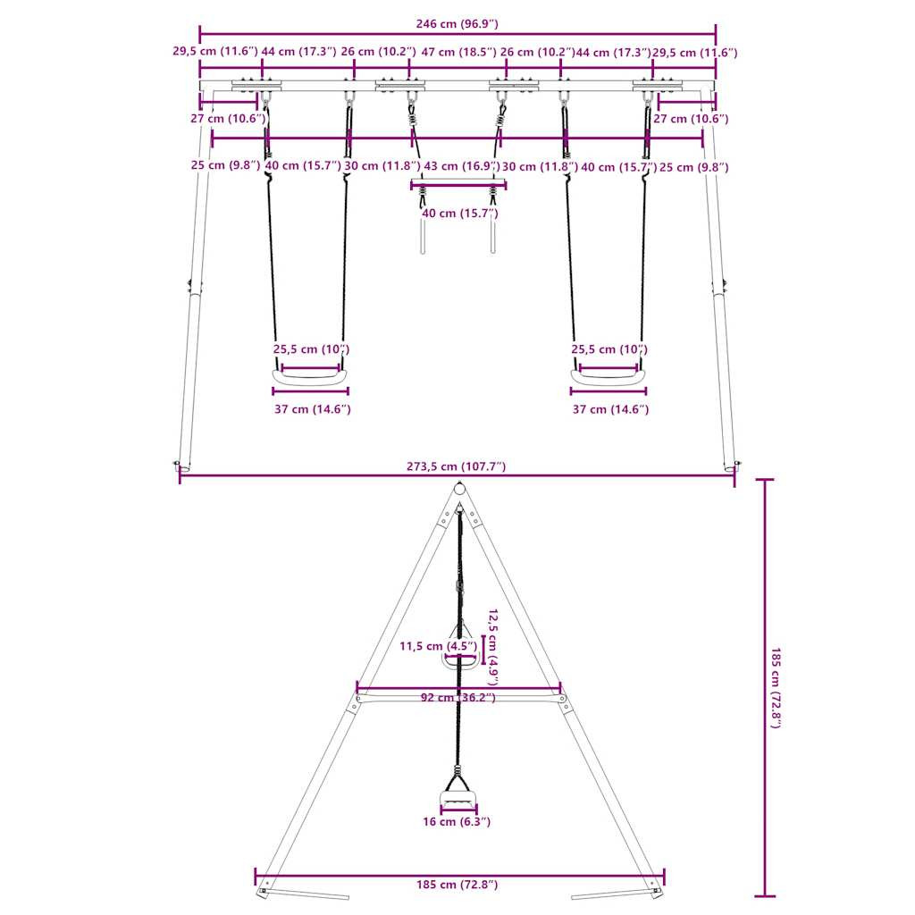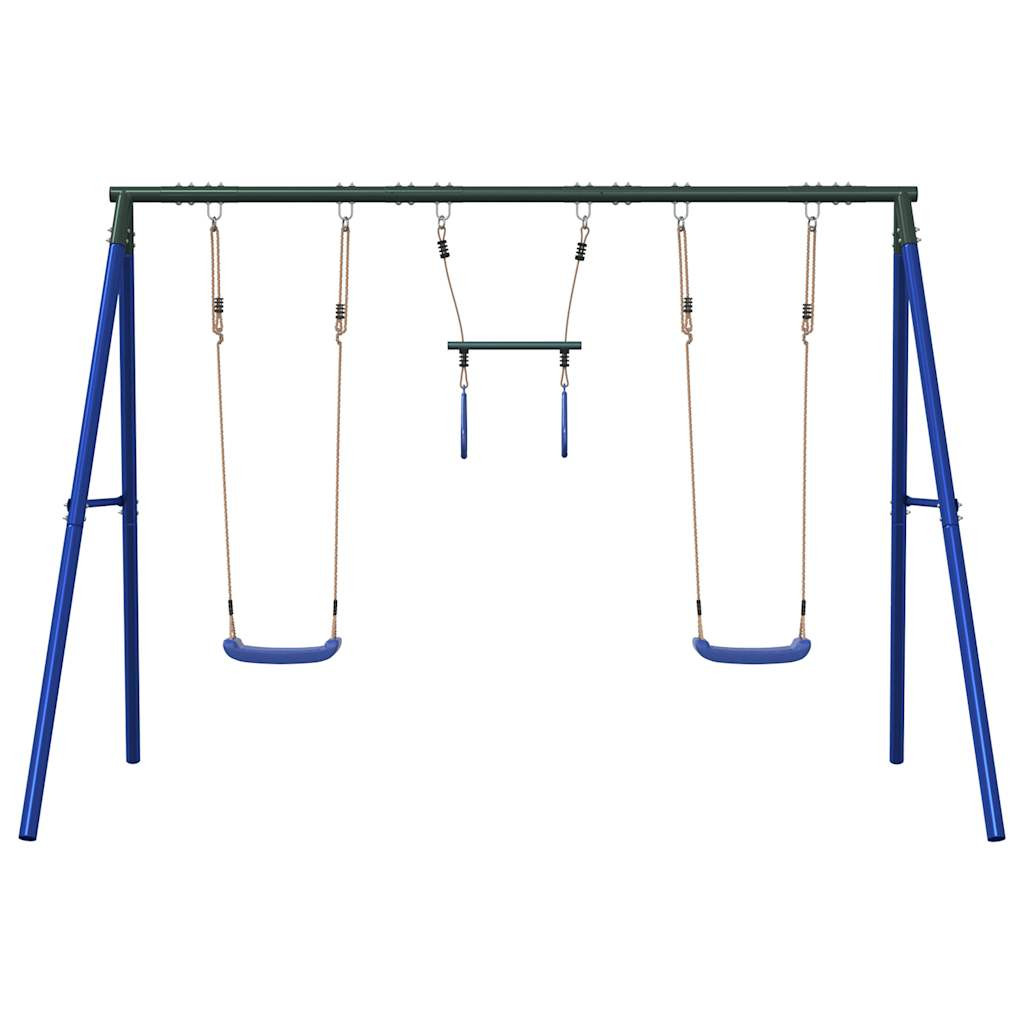 Varázsolja kertjét gyerekei játszóterévé ezzel a kültéri hinta szettel! Szórakoztató foglalkoztatóközpont: Ez a gyermekhintaszett 2 különböző játéklehetőséget tartalmaz két hintaüléssel és egy tornagyűrűkkel ellátott trapézrúddal. Így a gyerekek kedvükre hintázhatnak és mászhatnak.Nagy teherbírású fém váz: Ez a hintaváz festett acélcsövekből készült, amelyek rozsdaállók, rendkívül erősek, és ellenállnak a deformációnak, kiváló stabilitást és tartósságot biztosítva. Az A-alakú szerkezet erős támaszt nyújt, ingadozás nélkül.Állítható hintaülés: Ezt a kerti hintát úgy tervezték, hogy gyermekével együtt növekedjen, így kisgyermekek és növekvő gyerekek számára egyaránt alkalmas. A kötélhossz beállításával könnyedén alkalmazkodhat gyermeke változó igényeihez.Multifunkcionális szabadtéri játékok gyerekeknek: Ez a kerti hinta szett segít a gyerekeknek fejleszteni egyensúlyukat, koordinációjukat, mozgékonyságukat, erejüket, és állóképességüket, miközben változatos játék- és testmozgást biztosít.Széleskörű felhasználás: Ez a hintaváz különféle helyeken helyezhető el, például kertben, hátsó udvaron, óvodában, játszótéren stb. Jó tudni:A biztonság kedvéért ügyeljen arra, hogy a hinta egyszerre csak egy gyermek számára legyen elérhető. Figyelem. 3 év alatti gyermekek számára nem alkalmas. Csak háztartási használatra.
