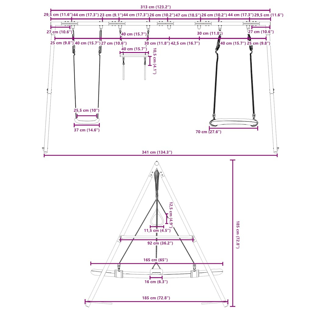 Varázsolja kertjét gyerekei játszóterévé ezzel a kültéri hinta szettel! Szórakoztató foglalkoztatóközpont: Ez a gyermekhintaszett 3 különböző játéklehetőséget tartalmaz hintaüléssel, ovális fészekhintával és tornagyűrűkkel ellátott trapézrúddal. Így a gyerekek kedvükre hintázhatnak és mászhatnak.Nagy teherbírású fém váz: Ez a hintaváz festett acélcsövekből készült, amelyek rozsdaállók, rendkívül erősek, és ellenállnak a deformációnak, kiváló stabilitást és tartósságot biztosítva. Az A-alakú szerkezet erős támaszt nyújt, ingadozás nélkül.Állítható hintaülés: Ezt a kerti hintát úgy tervezték, hogy gyermekével együtt növekedjen, így kisgyermekek és növekvő gyerekek számára egyaránt alkalmas. A kötélhossz beállításával könnyedén alkalmazkodhat gyermeke változó igényeihez.Multifunkcionális szabadtéri játékok gyerekeknek: Ez a kerti hinta szett segít a gyerekeknek fejleszteni egyensúlyukat, koordinációjukat, mozgékonyságukat, erejüket, és állóképességüket, miközben változatos játék- és testmozgást biztosít.Széleskörű felhasználás: Ez a hintaváz különféle helyeken helyezhető el, például kertben, hátsó udvaron, óvodában, játszótéren stb. Jó tudni:A biztonság kedvéért ügyeljen arra, hogy a hinta egyszerre csak egy gyermek számára legyen elérhető. Figyelem. 3 év alatti gyermekek számára nem alkalmas. Csak háztartási használatra.