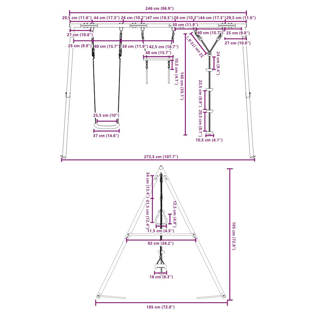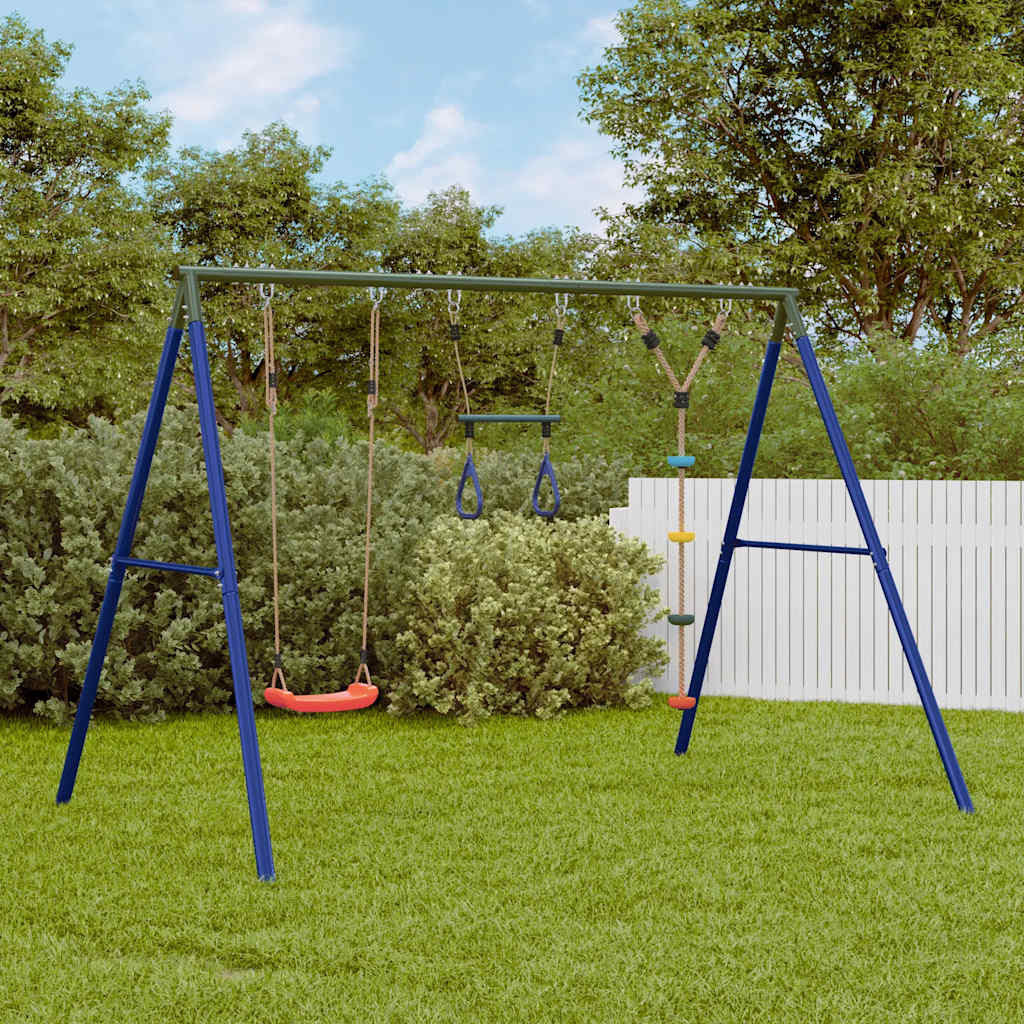 Varázsolja kertjét gyerekei játszóterévé ezzel a kültéri hinta szettel! Szórakoztató foglalkoztatóközpont: Ez a gyermekhintaszett 3 különböző játéklehetőséget tartalmaz hintaüléssel, tárcsákkal ellátott kötélhintával, és tornagyűrűkkel ellátott trapézzal. Így a gyerekek kedvükre hintázhatnak és mászhatnak.Nagy teherbírású fém váz: Ez a hintaváz festett acélcsövekből készült, amelyek rozsdaállók, rendkívül erősek, és ellenállnak a deformációnak, kiváló stabilitást és tartósságot biztosítva. Az A-alakú szerkezet erős támaszt nyújt, ingadozás nélkül.Állítható hintaülés: Ezt a kerti hintát úgy tervezték, hogy gyermekével együtt növekedjen, így kisgyermekek és növekvő gyerekek számára egyaránt alkalmas. A kötélhossz beállításával könnyedén alkalmazkodhat gyermeke változó igényeihez.Multifunkcionális szabadtéri játékok gyerekeknek: Ez a kerti hinta szett segít a gyerekeknek fejleszteni egyensúlyukat, koordinációjukat, mozgékonyságukat, erejüket, és állóképességüket, miközben változatos játék- és testmozgást biztosít.Széleskörű felhasználás: Ez a hintaváz különféle helyeken helyezhető el, például kertben, hátsó udvaron, óvodában, játszótéren stb. Jó tudni:A biztonság kedvéért ügyeljen arra, hogy a hinta egyszerre csak egy gyermek számára legyen elérhető. Figyelem. 3 év alatti gyermekek számára nem alkalmas. Csak háztartási használatra.