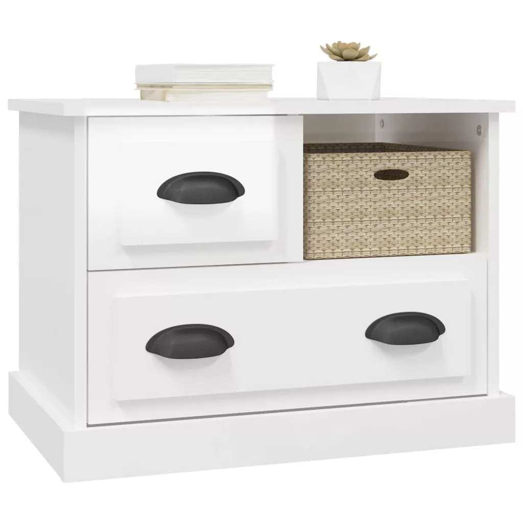 magasfényű fehér éjjeliszekrény 60x39x45 cm