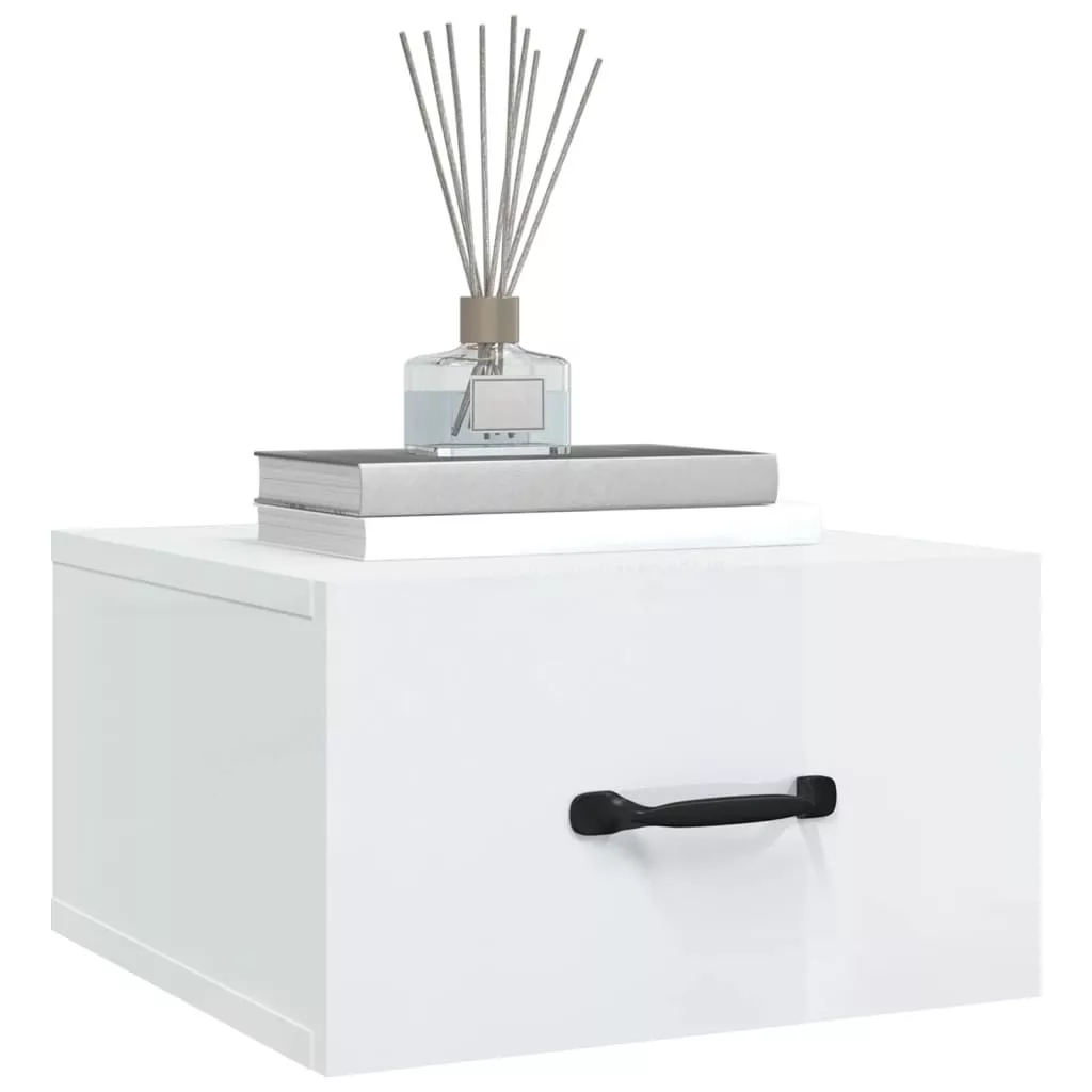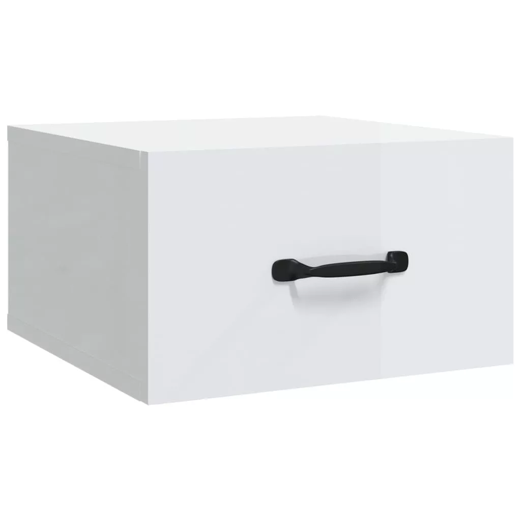 magasfényű fehér falra szerelhető éjjeliszekrény 35x35x20 cm