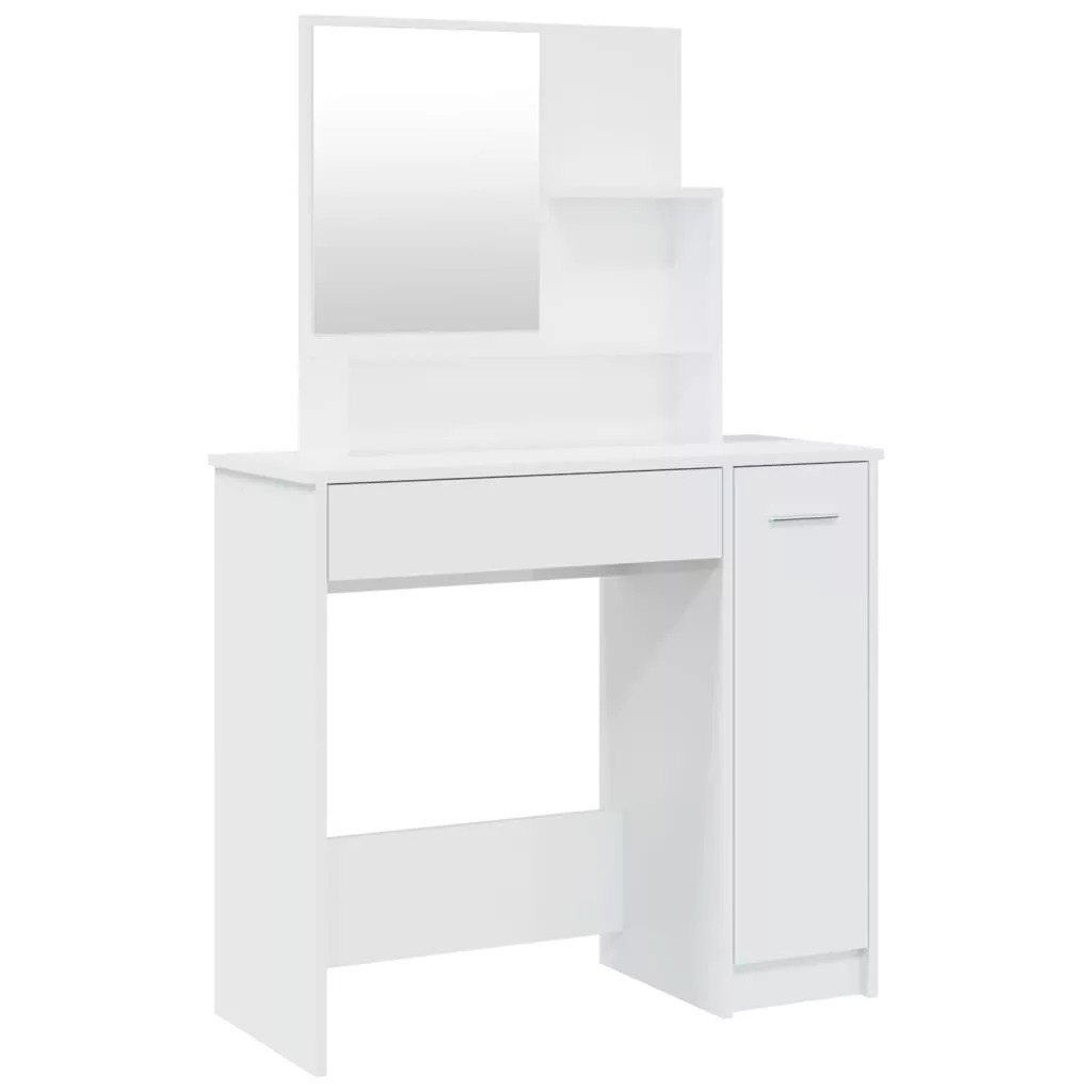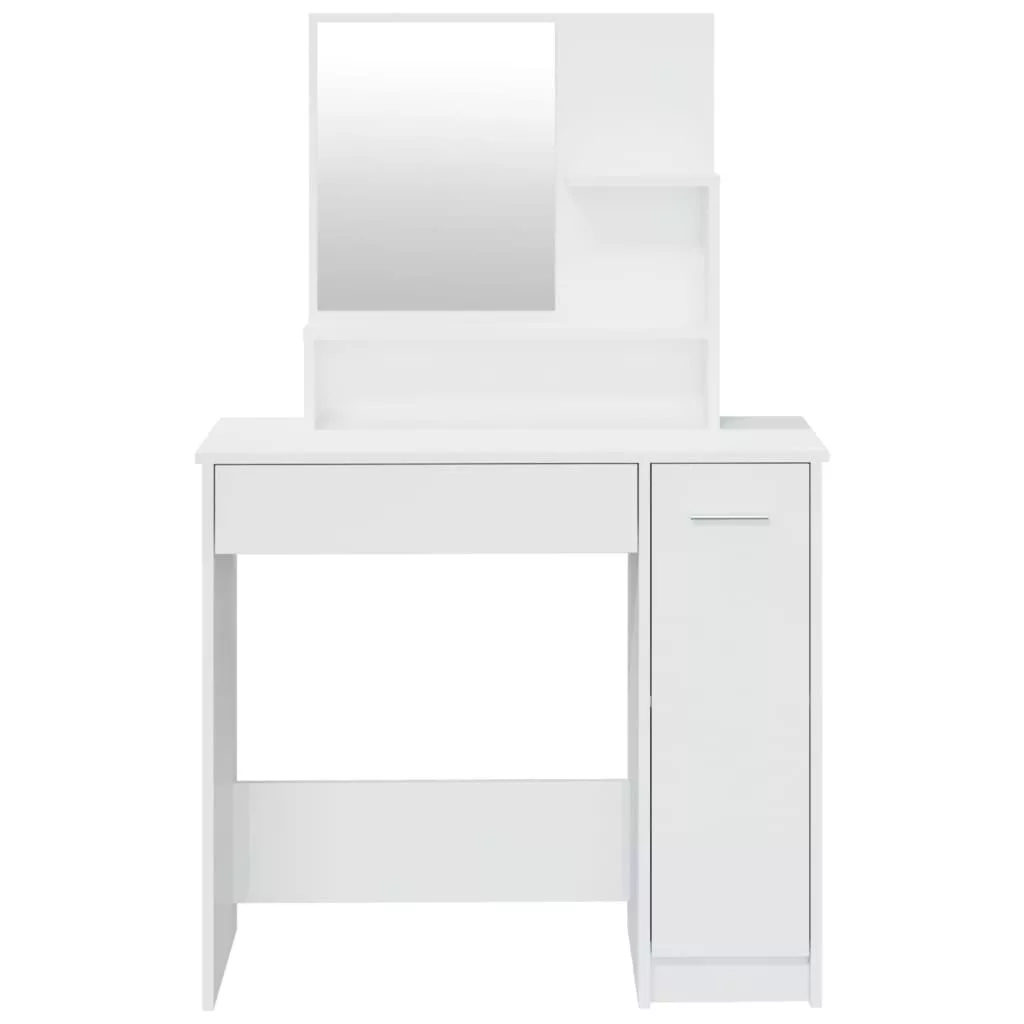 Ez a fésülködőasztal időtlen, kifinomult megjelenést visz hálószobájába. A tükörrel ellátott sminkasztal hálószobája nagyszerű kiegészítője lesz, miközben kézközelben tarthatja kozmetikumait! Prémium minőségű anyag: A szerelt fa kivételes minőségű, sima felületű, szilárd, stabil, és ellenáll a nedvességnek. A szerelt fából készült pipereasztal könnyen tisztítható.Bőséges tárolóhely: A sminkasztal fiókja, rekeszei és nyitott polcai helyet biztosítanak a sminkeszközöknek, és mindennek meglesz a saját helye.Hasznos tükör: A gyönyörű tükör segít a sminkelésben, és elegánsabbá teszi a sminkasztalt.Praktikus ajtó: Tartsa rendben környezetét azzal, hogy a kisebb tárgyakat az ékszerasztal ajtaja mögé rejti. Figyelem:A dőlés megakadályozása érdekében a terméket a mellékelt tartóelem segítségével rögzíteni kell a falhoz. Megjegyzés:Az egyszerű összeszerelés érdekében minden termékhez mellékelünk összeszerelési útmutatót.