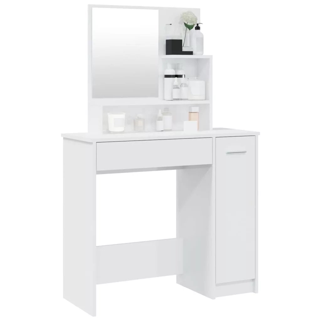 magasfényű fehér fésülködőasztal tükörrel 86,5 x 35 x 136 cm