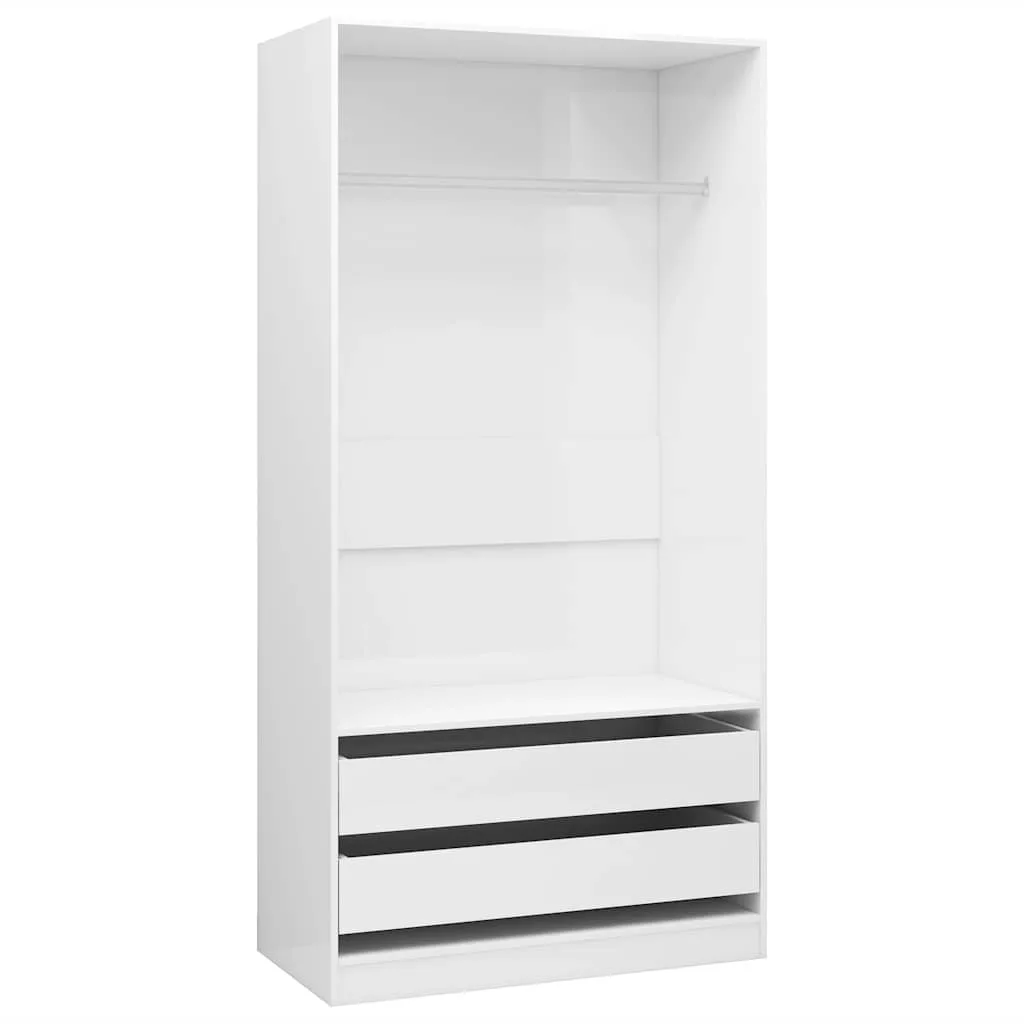 magasfényű fehér szerelt fa ruhásszekrény 100 x 50 x 200 cm