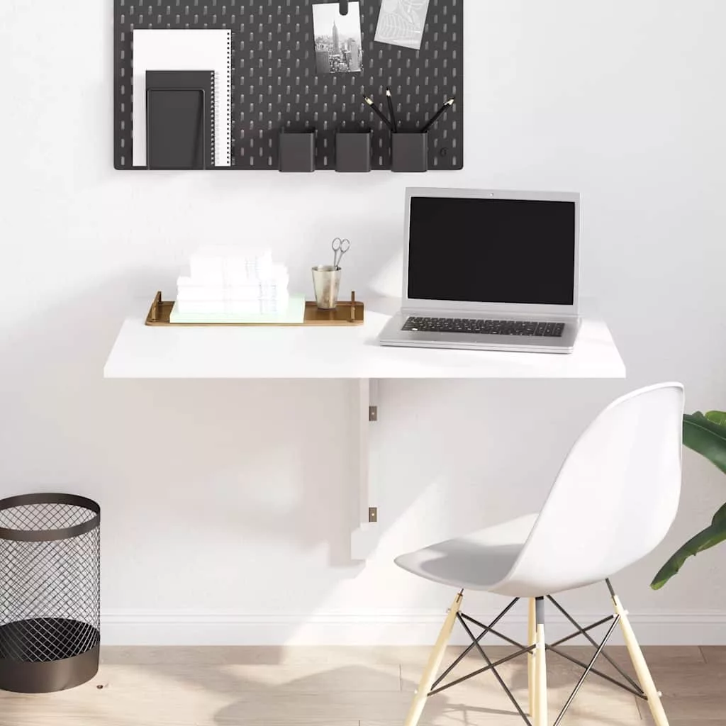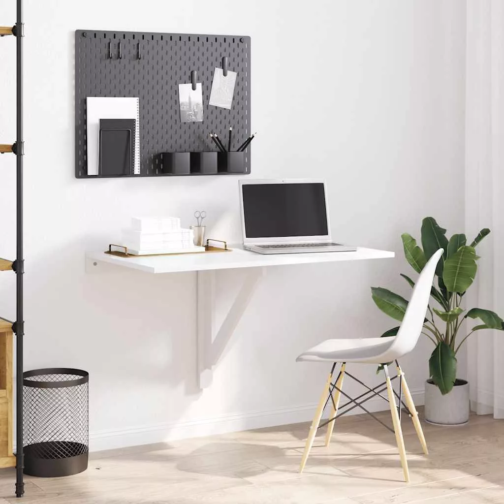 magasfényűfehér szerelt fa összecsukható fali asztal100x60x56cm