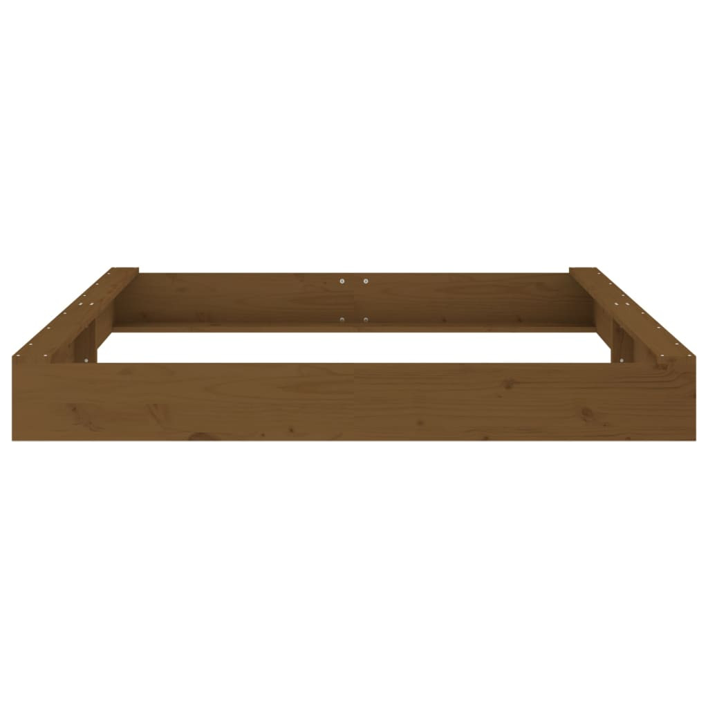 mézbarna négyszög alakú tömör fenyőfa homokozó ülésekkel