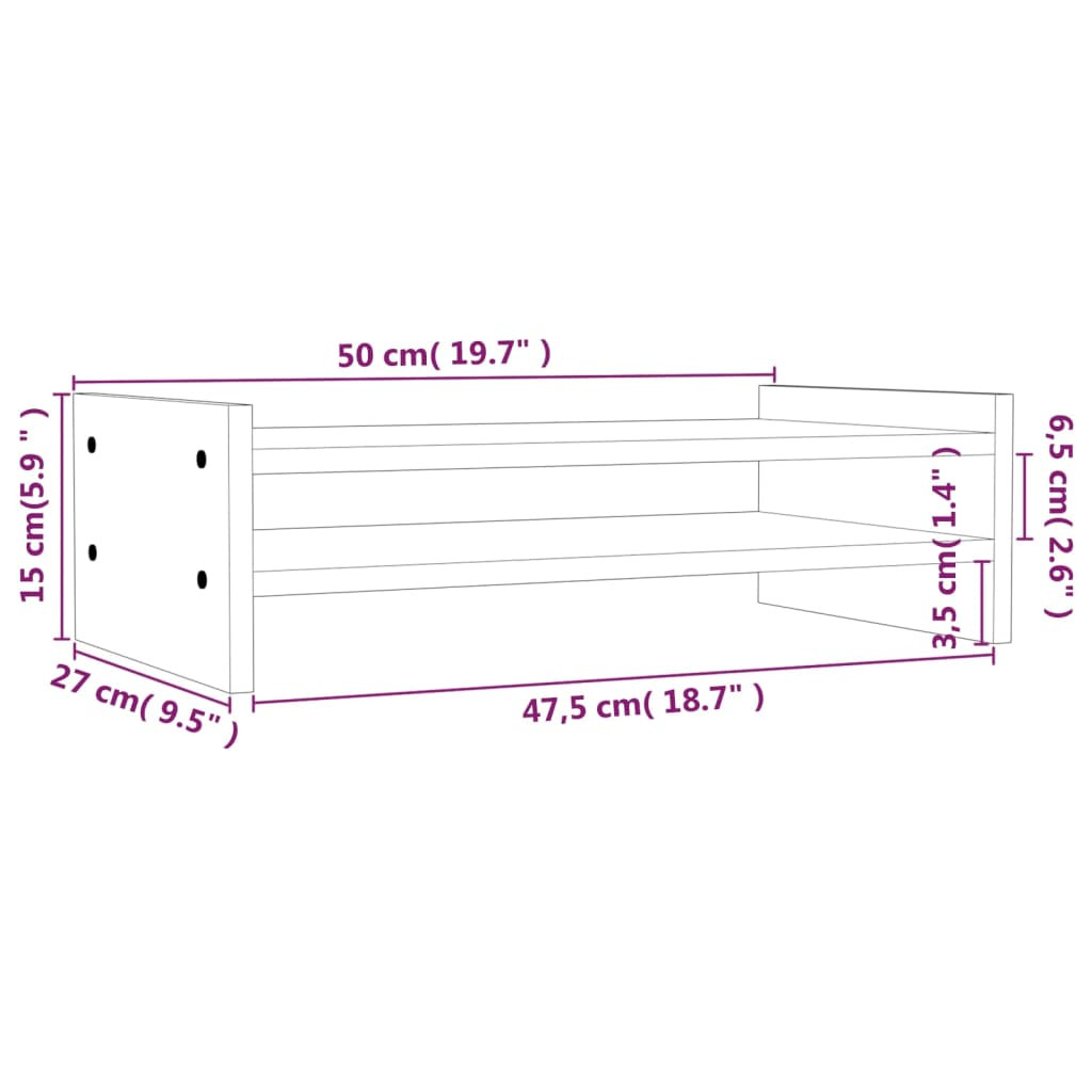 mézbarna tömör fenyőfa monitorállvány 50x27x15 cm
