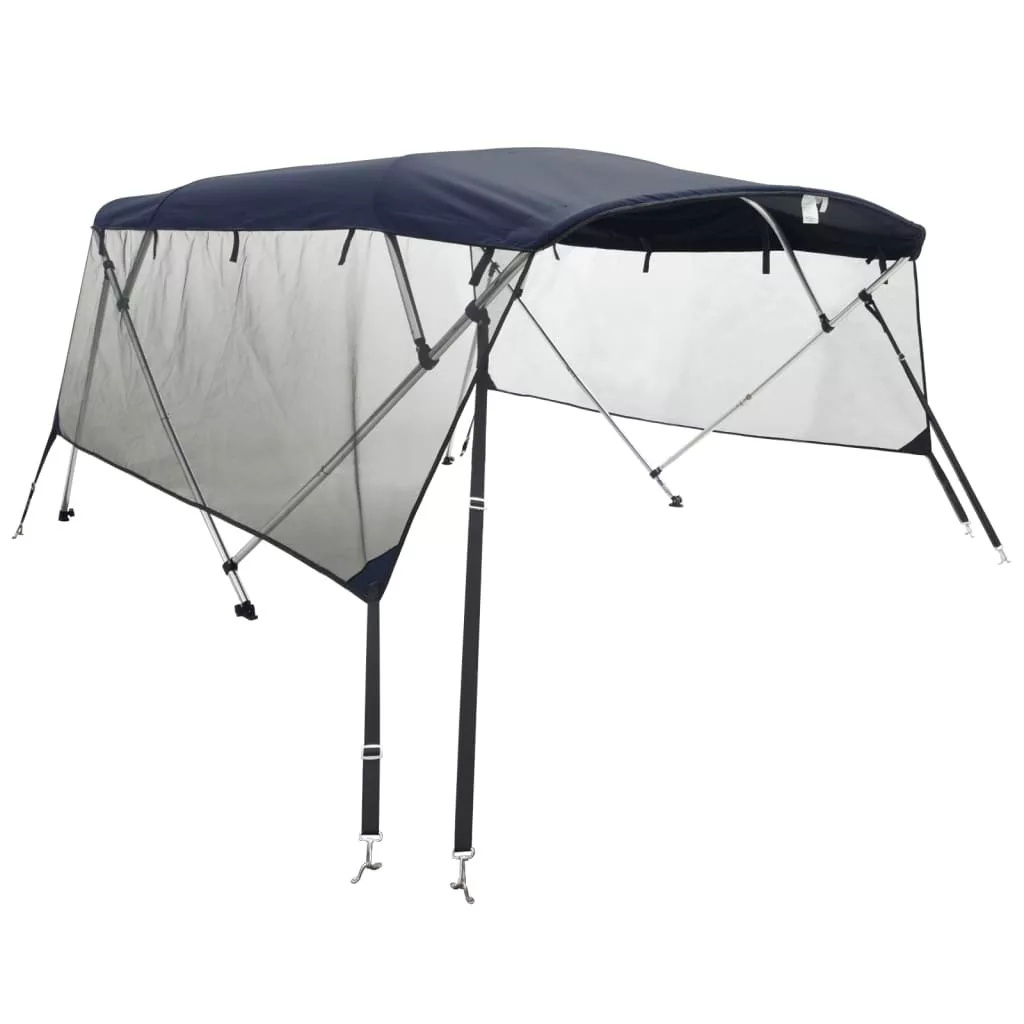 Ez az oldalfalakkal ellátott, négyágú bimini tető hatékonyan véd a közvetlen napfénytől és a zord időjárási körülményektől, például jégesőtől vagy esőtől. Tartós anyag: Ez a négyágú bimini tető 100% poliészterből készült poliuretán bevonattal, így UV-, víz- és penészálló, valamint hosszú élettartamú.Masszív szerkezet: A bimini tető alumínium vázzal rendelkezik, a négyágú kialakítás pedig növeli a stabilitását.Hosszú élettartam: A szemes horgok, a rögzítőanyák és a gombok tengerészeti minősítésű, 316-os rozsdamentes acélból készültek, amely korrózióálló, és különösen alkalmas hosszú távú használatra.Praktikus kialakítás: Ez a bimini tető mindkét oldalán hatékonyan véd a közvetlen napfénytől és az esőtől. Emellett az oldalfal bármikor könnyen feltekerhető, és felül rögzíthető. Jó tudni:Kérjük használja a tárolót, hogy megvédje a szövetet, amikor nem használja a bimini tetőt, és hajtsa be a ponyvát, amikor a hajó sebessége meghaladja a 40 km/órát.