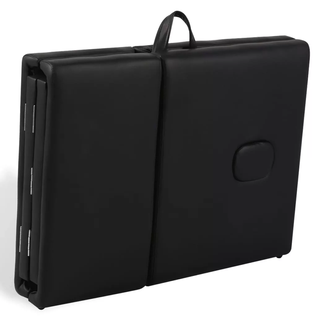 négyzónás fekete összecsukható masszázsasztal fa vázzal