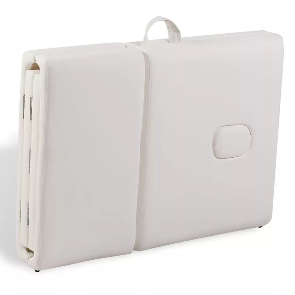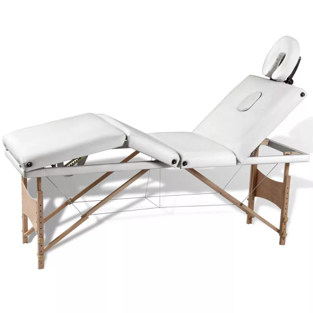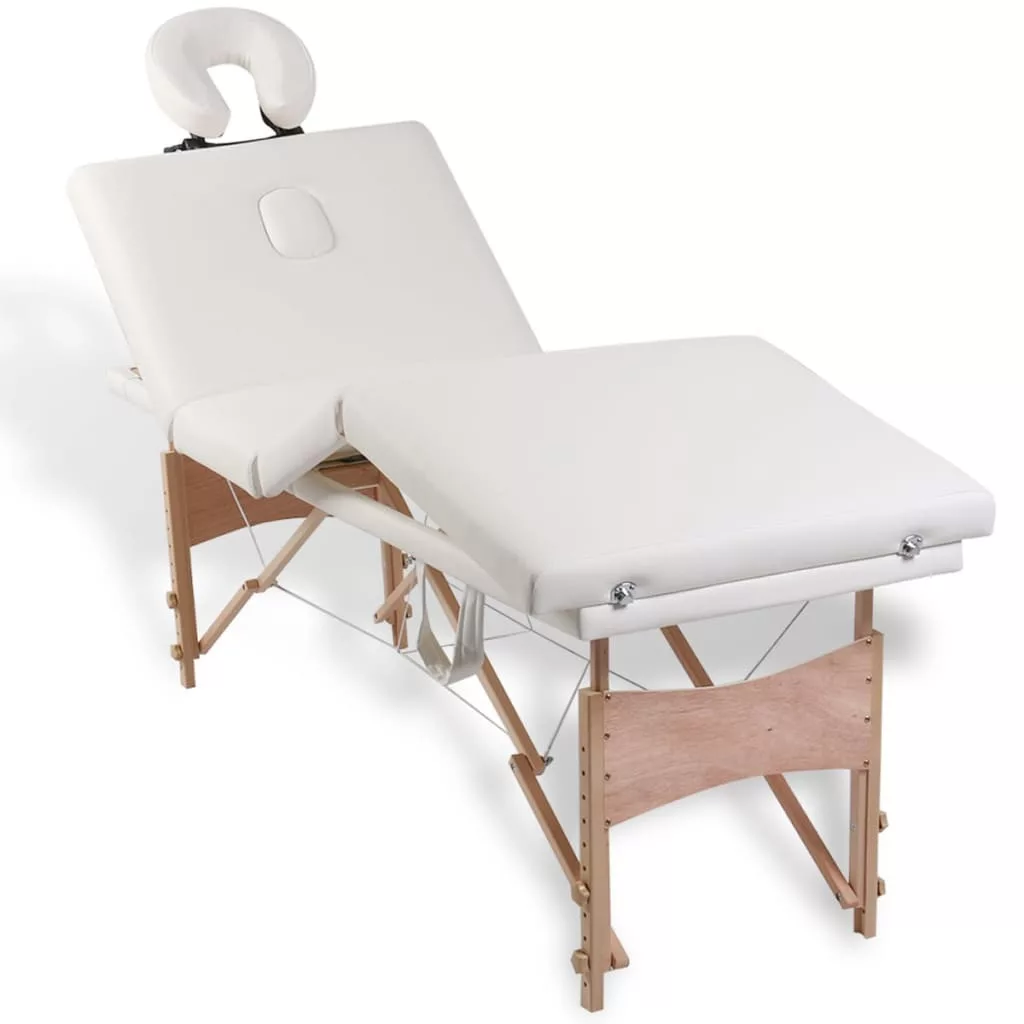négyzónás krémfehér összecsukható masszázsasztal fa vázzal