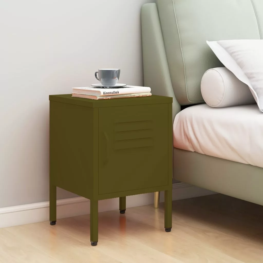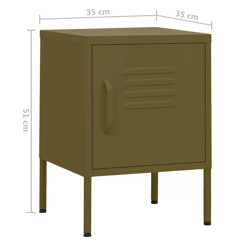 olivazöld acél éjjeliszekrény 35 x 35 x 51