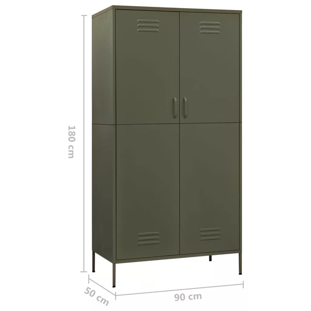 olívazöld acél ruhásszekrény 90 x 50 x 180 cm