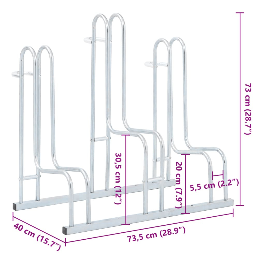 padlón álló horganyzott acél kerékpártartó 3 kerékpárhoz