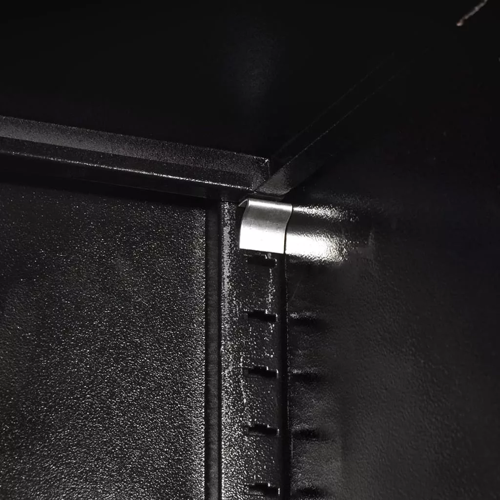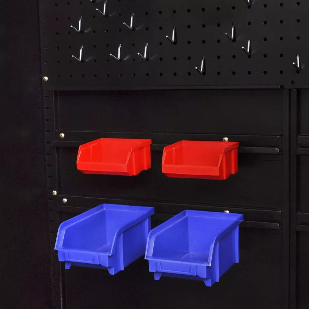 Tartsa rendezetten szerszámait ebben a három kivehető fiókkal ellátott szerszámszekrényben! Karcálló bevonattal ellátott, nagy teherbírású acélból készült, így rendkívül robusztus és tartós. A 2 kulccsal szállított, 3 pontos zárrendszernek köszönhetően szerszámait és egyéb tárgyait biztonságban tudhatja. A szekrény 2 beépített állvánnyal rendelkezik, melyre tárolórekeszek akaszthatók (ezeket a csomag nem tartalmazza), valamint 3 kivehető polccal lett ellátva, melyek teherbírása 40 kg darabonként. A hátulján található szerszámtartó táblára különféle szerszámokat, például csavarkulcsokat, fogókat, kalapácsokat stb. tehet. (A csomag szerszámokat és kampókat nem tartalmaz.) A kivehető, 3 fiókos szerszámosláda maximális teherbírása 15 kg fiókonként, így bőséges helyet kínál kisebb szerszámok és kiegészítők tárolásához. Ráadásul nagy teherbírású acélból készült, így kiemelkedően tartós és strapabíró. A termék a mellékelt szerelési tartozékokkal könnyen összeszerelhető.