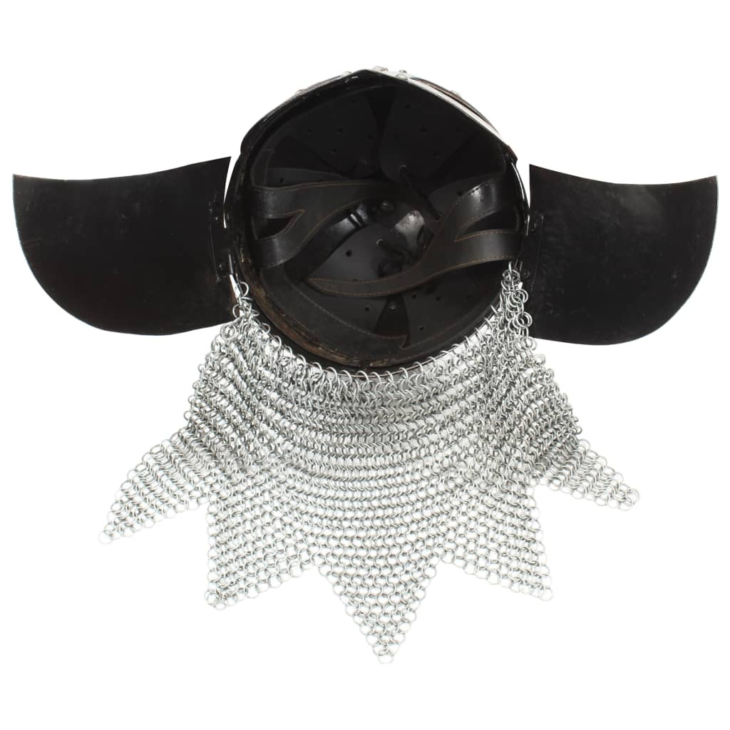Ez az antik kinézetű páncélsisak tökéletes LARP-hoz (élő akció szerepjáték), jelmeznek, történelmi tematikájú bulihoz, Halloween bulihoz, színházi kelléknek és történelmi események rekonstruálásához. A páncélsisak egy eredeti viking harcos sisak tökéletes másolata. 18-as vastagságú acélból készült, az antik stílus és a robusztus anyag kombinációjának egy szemet gyönyörködtető sisak lett a végeredménye, mely tökéletesen illeszkedik a harci viselethez. Sisakunkban egy homlokhoz szegecselt orrvédő található, amely jobban megvédi az orrát. Ráadásul vonzó dísztárgy is.