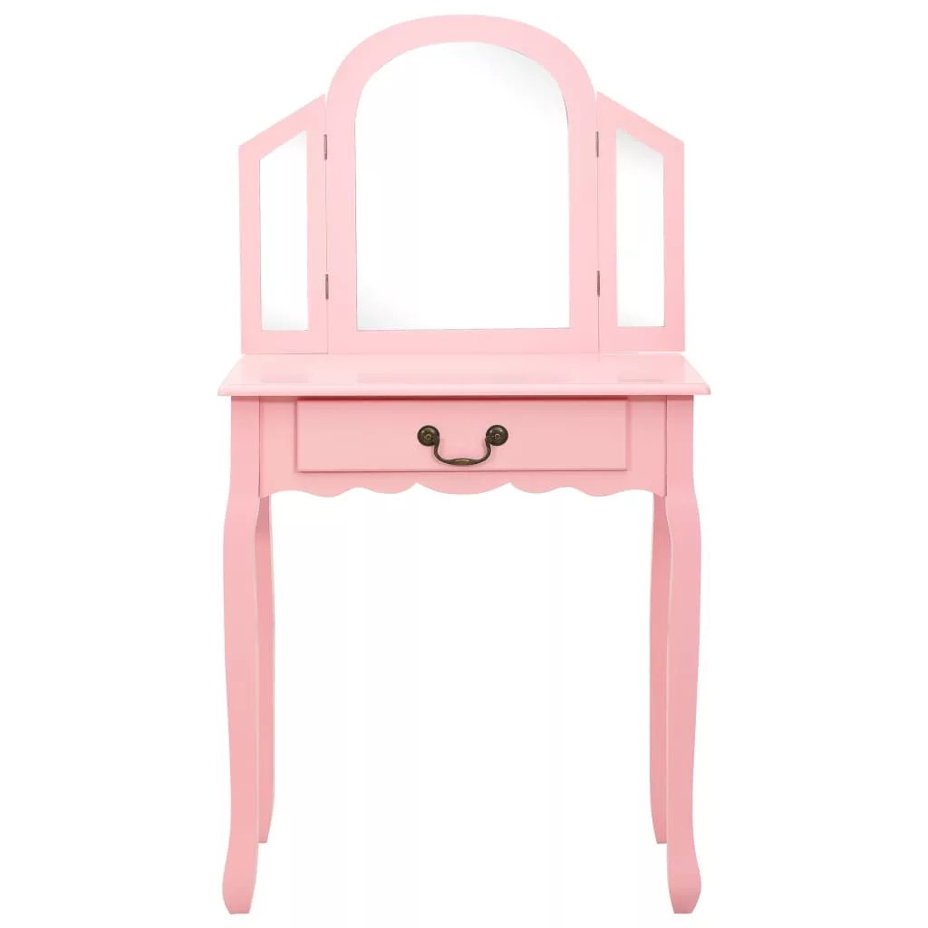 rózsaszín császárfa MDF fésülködőasztal ülőkével 65x36x128 cm