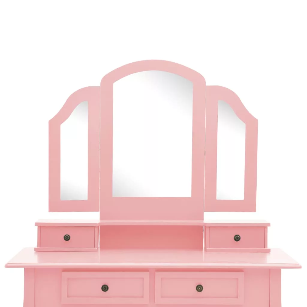 rózsaszín császárfa fésülködőasztal-szett ülőkével 100x40x146cm