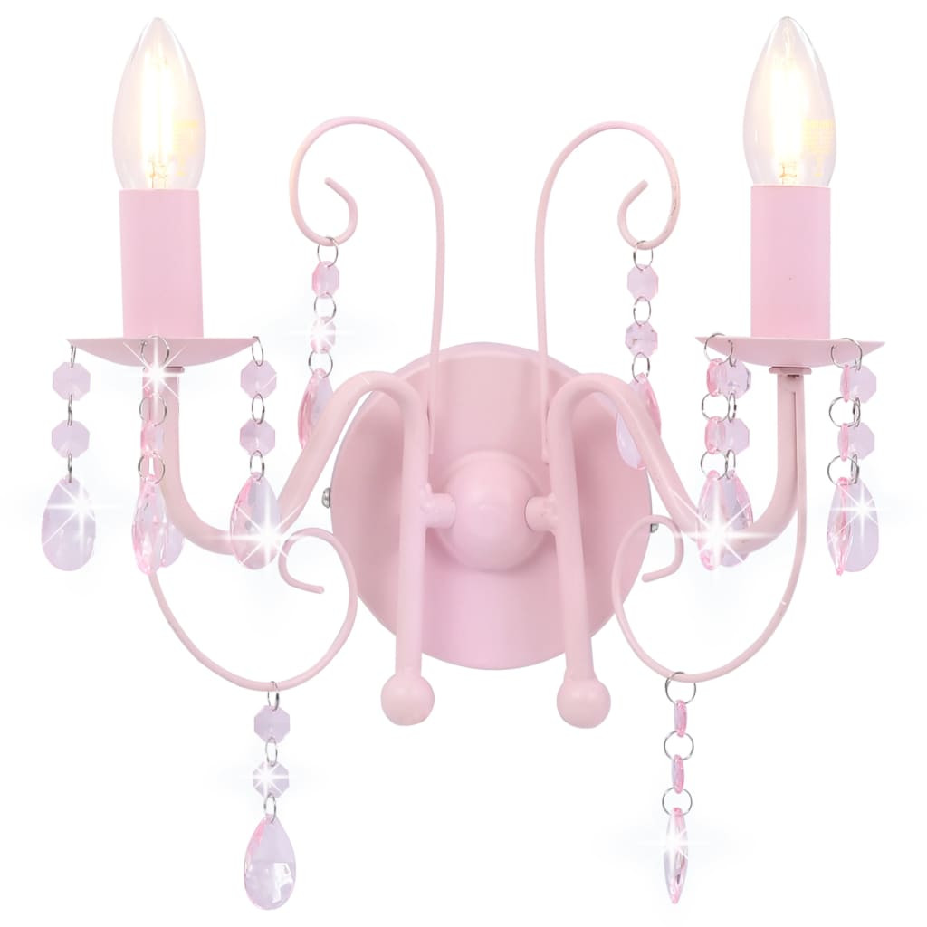 rózsaszín fali lámpa gyöngyökkel 2 x E14