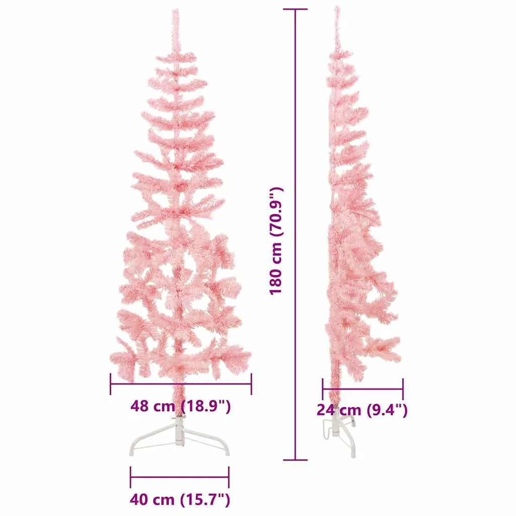 rózsaszín vékony fél műkarácsonyfa állvánnyal 180 cm