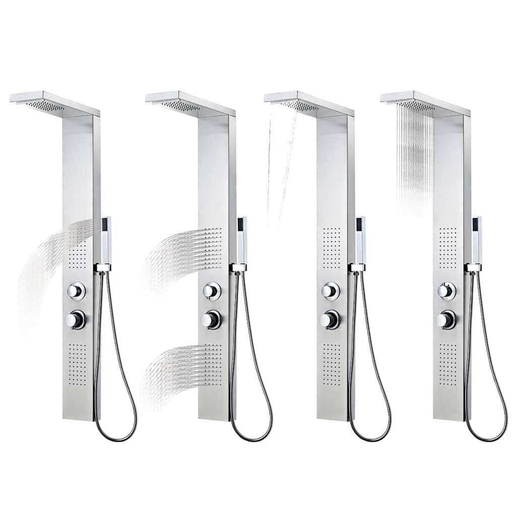Ez a stílusos, többfunkciós zuhanyrendszer fürdőszobája nagyszerű kiegészítője lesz. Ez a tusoló torony tartós és rozsdamentes, fényezett acélból készült, melynek egy gyönyörű és szögletes tervezése van. 4 funkcióval van ellátva: Esőztető, vízesés, masszázs "jet" és kézi tusoló, melyek könnyedén választhatóak a forgatható gomb segítségével. Kényeztesse magát egy pihentető zuhanyzással és élvezze ennek a gyönyörű dizájnnal rendelkező zuhanyzópanel-rendszernek a modern stílusát!