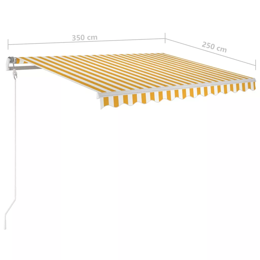 sárga-fehér szélérzékelős és LED-es napellenző 350 x 250 cm