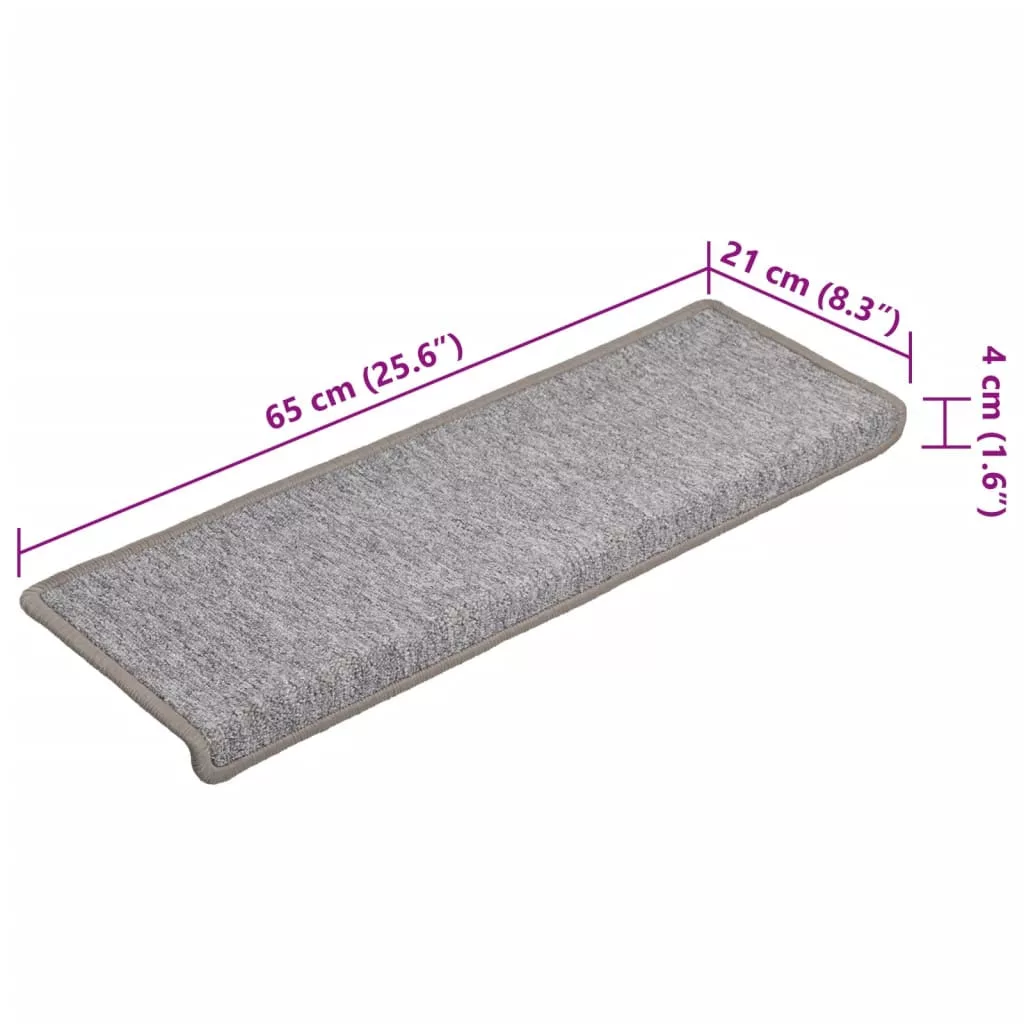 15 db világosszürke lépcsőszőnyeg, téglalap alakú széllel, 65 x 21 x 4 cm