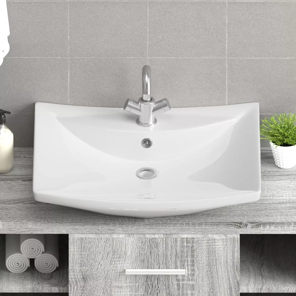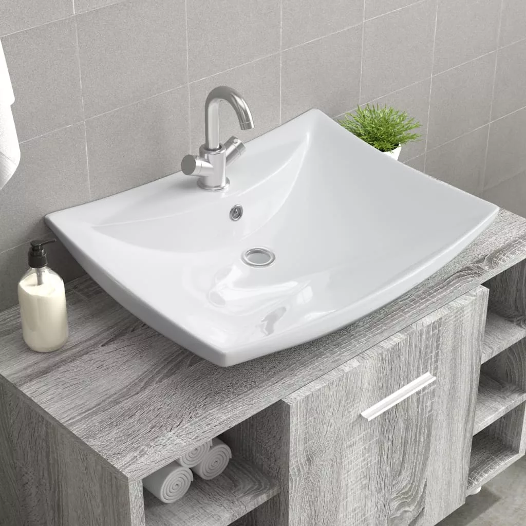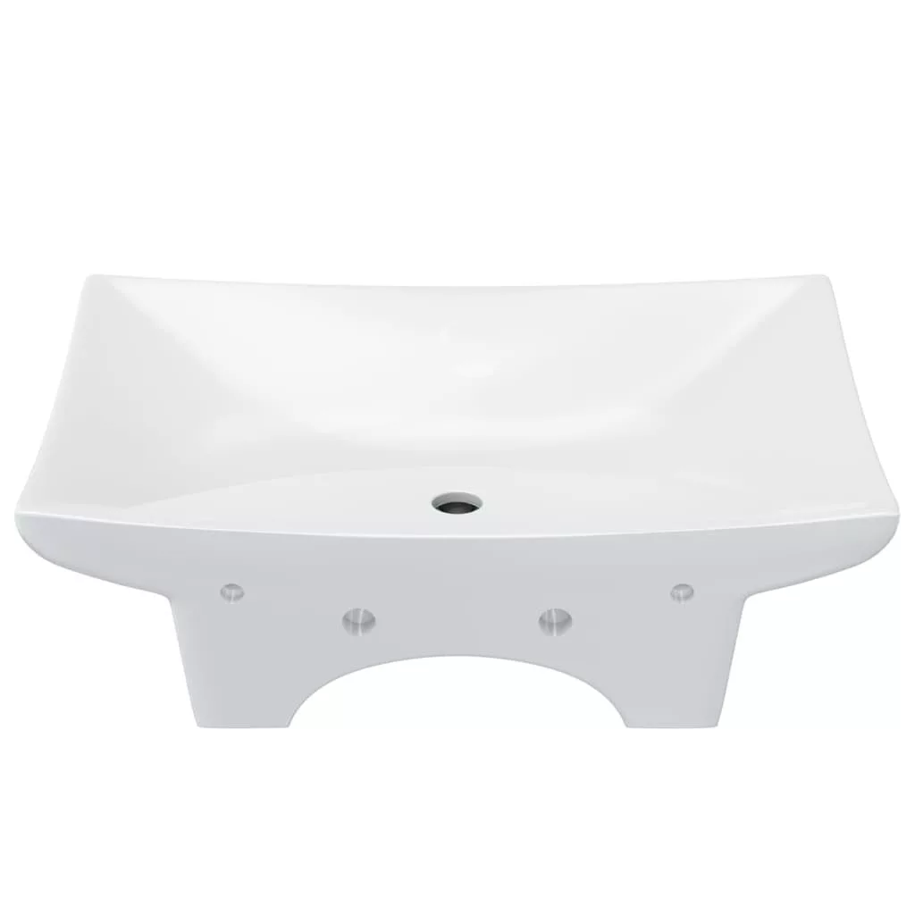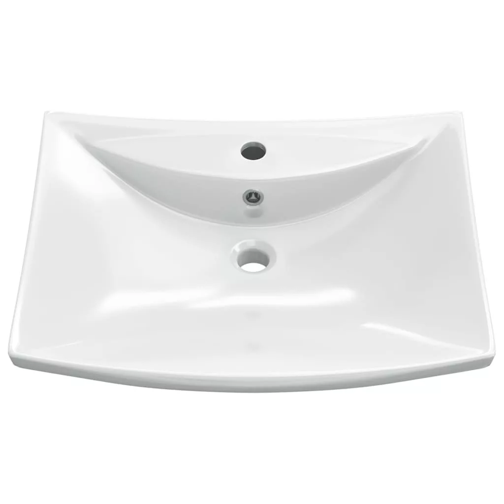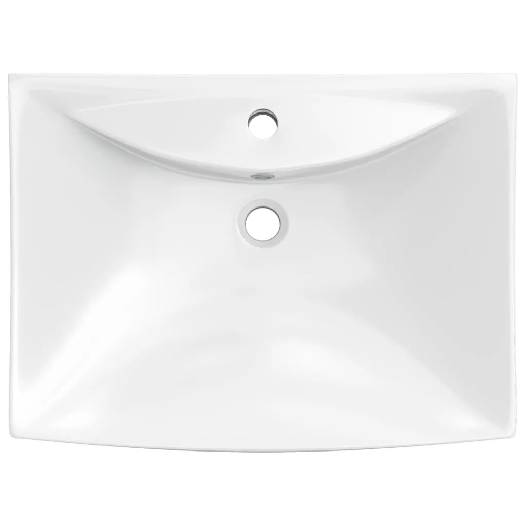 Négyszögletes luxus kerámia mosdókagyló túlfolyóval és lyukkal csaphoz