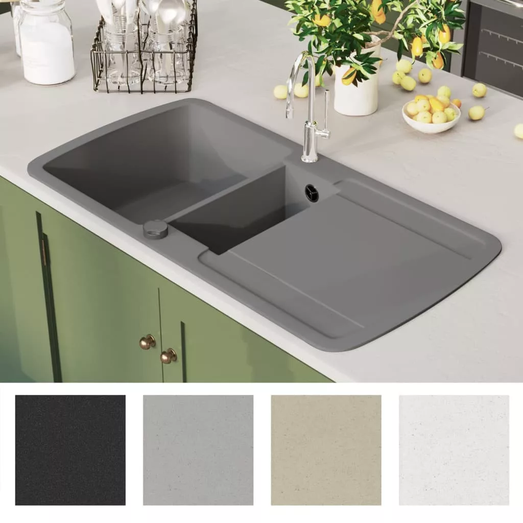 Gránit mosogatótálcánk kortalan kiegészítője lesz konyhájának. Két medencével rendelkezik, és letisztult megjelenéssel bír. A kiváló minőségű gránitnak köszönhetően a mosogató hőálló, karc- és ütésálló és rendkívül könnyen tisztítható. Teljesen elforgatható, ami azt jelenti, hogy jobb vagy bal oldalra is beépíthető. A szállítás egy szűrőkosarat is tartalmaz, mely felfogja a nagyobb törmelékeket. A gyermekeket felügyelni kell, hogy ne játsszanak a készülékkel. Tartsa távol a gyerekeket az összeszerelési területtől. Figyelem: Használat előtt figyelmesen olvassa el az utasításokat, és őrizze meg további hivatkozás céljából.